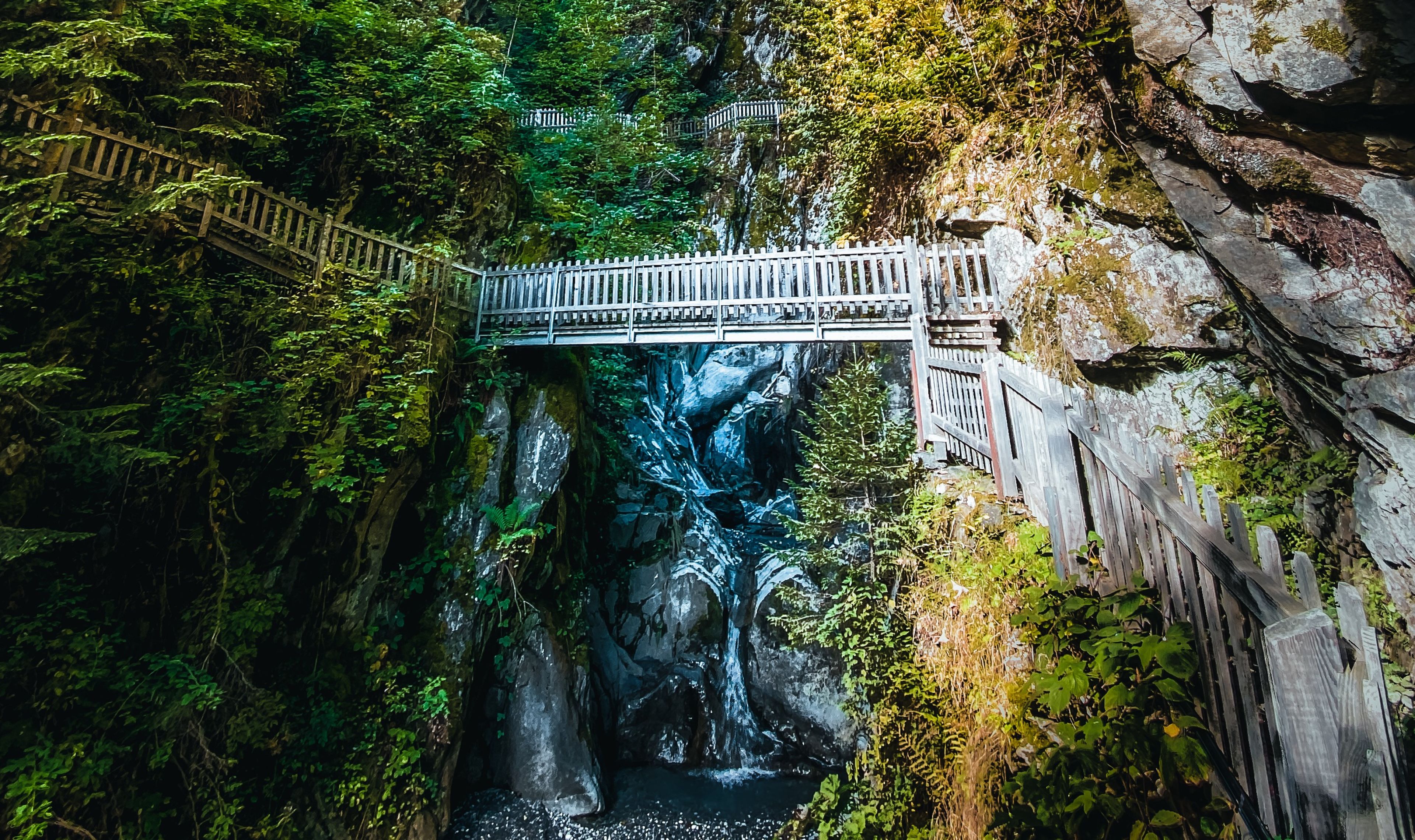 Mehrere Stege und drei Brücken, die die Geschichte der Verkehrswege im Tal erahnen lassen, machen die Triège-Schlucht zu einem beeindruckenden Spaziergang für alle. Sie befindet sich in der Nähe von Les Marécottes und lässt sich auf dem rund einen Kilometer langen Rundweg erkunden. Durch die Triège-Schlucht geht es hinauf und anschliessend durch den Wald und das malerische Dorf Le Trétien wieder zurück. Der Pfad durch die Schlucht besteht bereits seit 1870 und wurde 2014 saniert. Das Dorf Le Trétien ist als Ausgangsort für den Rundweg gut mit dem Mont-Blanc Express erreichbar.
