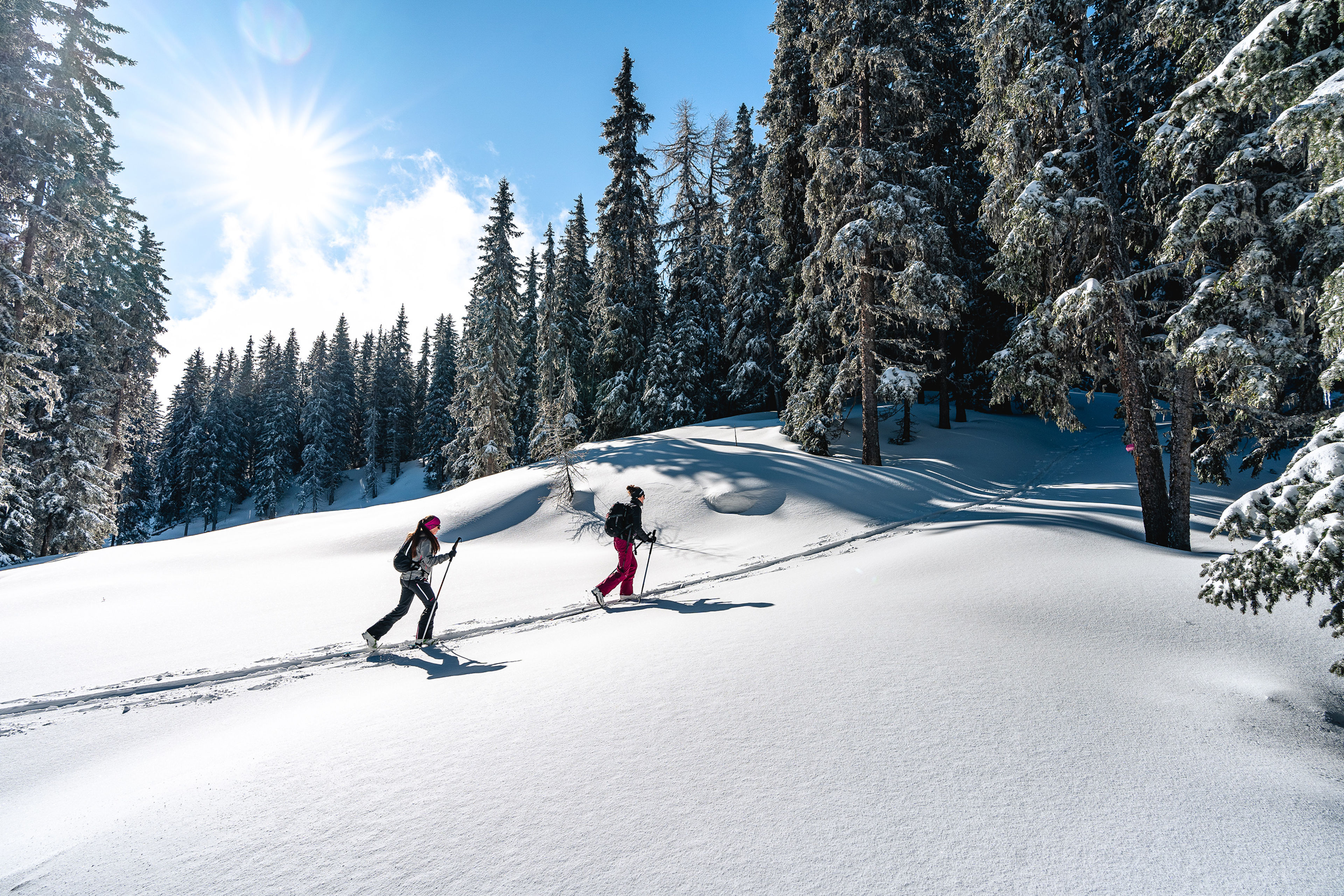 Im Ziel von Verbier - Val de Bagnes - La Tzoumaz stehen Skitourengängern sieben gesicherte Pisten (Touring Tracks) zur Auswahl. Die Länge und das Anforderungsniveau der einzelnen Parcous sind ganz unterschiedlich. Zwischen 1 Stunde 30 Minuten und 3 Stunden 30 Minuten mit Anstiegen bis zu 1000 Höhenmetern reichen die Pisten teils bis über 2200 Meter. Der Sektor Savoleyres sowie das Restaurant Savoleyres werden ab Januar jeden Mittwoch bis 21.00 Uhr geöffnet für nächtliche Skitouren.