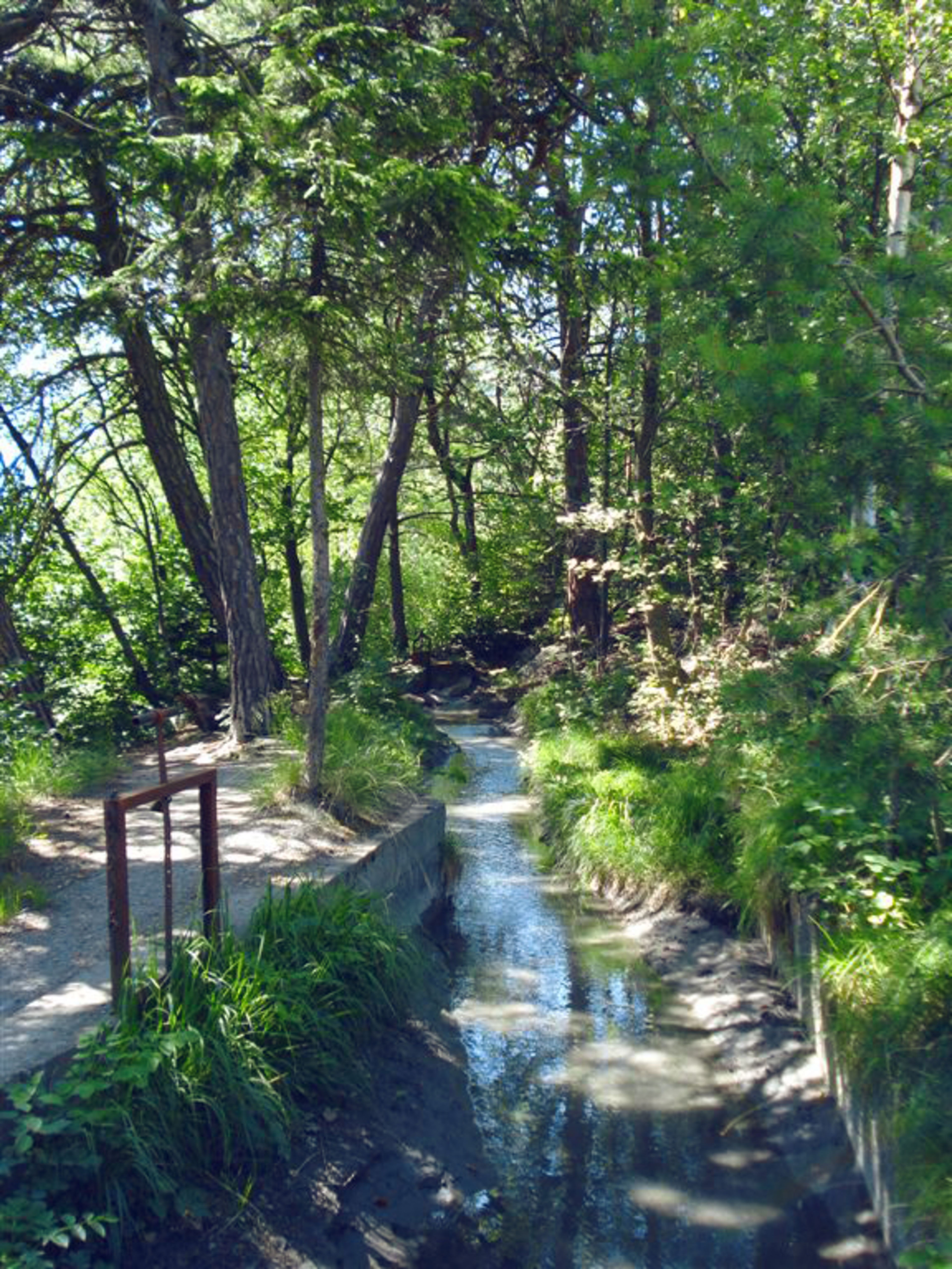 Die «Grossi Wasserleitu» oder auch Suone von Varen bezieht ihr Wasser aus der Raspille, bevor sie eine Lichtung überquert, durch die grossen Felsplatten von Blatte fliesst und die Wiesen und Weinberge von Varen bewässert. Die Raspille bildet nicht nur die Sprachgrenze zwischen den benachbarten Gemeinden, sie nährt auch die Suone Neuf, die ihrerseits dann die Hänge von Venthône mit Wasser versorgt.