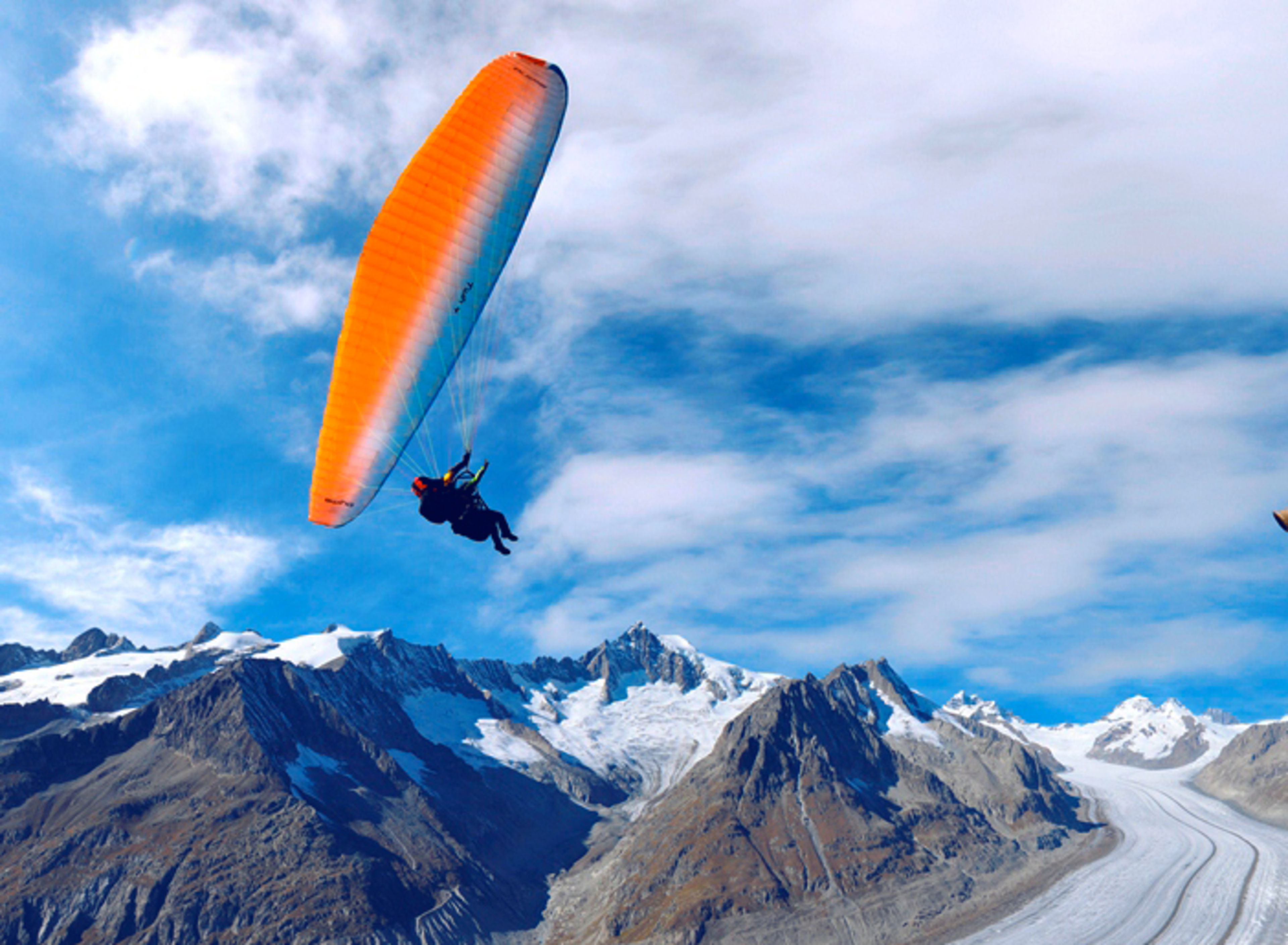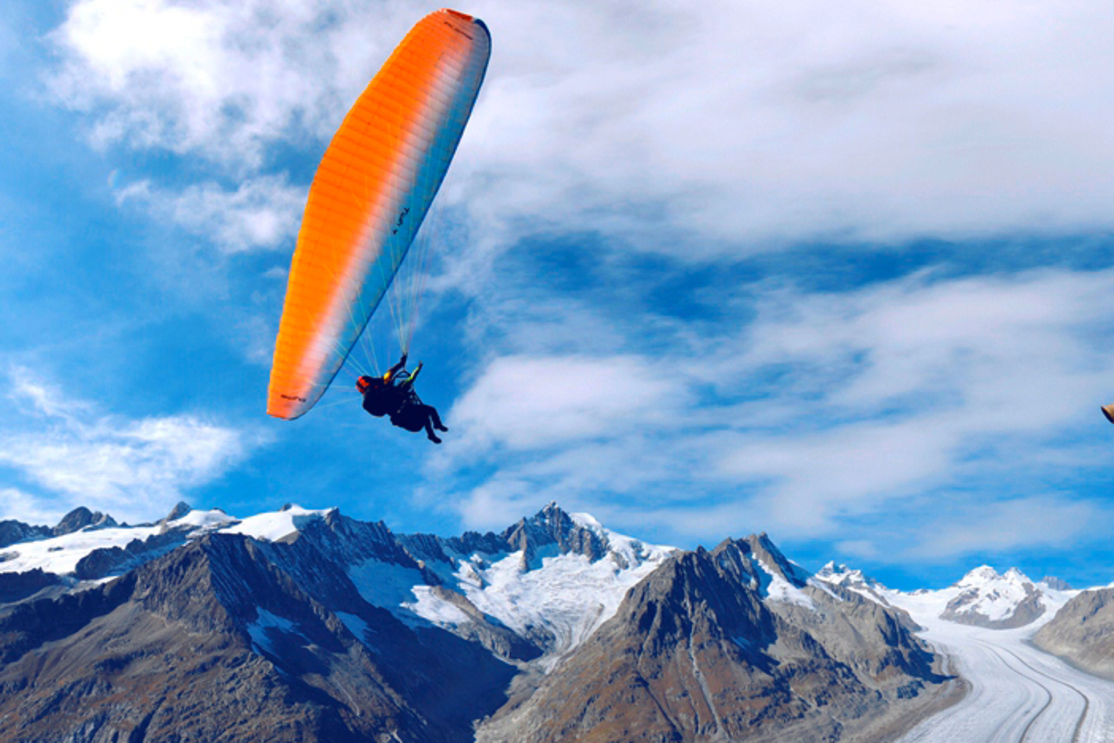 Gleitschirmfliegen in der Aletsch Arena im schönen Oberwallis. Erleben Sie das Aletschgebiet und den Aletschgletscher - mitten im UNESCO Welterbe - bei einem Passagierflug hautnah. Die FlugschuleFlug-Taxi bildet Sie zum Piloten aus. Nach der Ausbildung werden auch Sicherheits- und Thermikkurse sowie Flugreisen angeboten. Lassen Sie sich entführen in die Welt der Schwerelosigkeit.