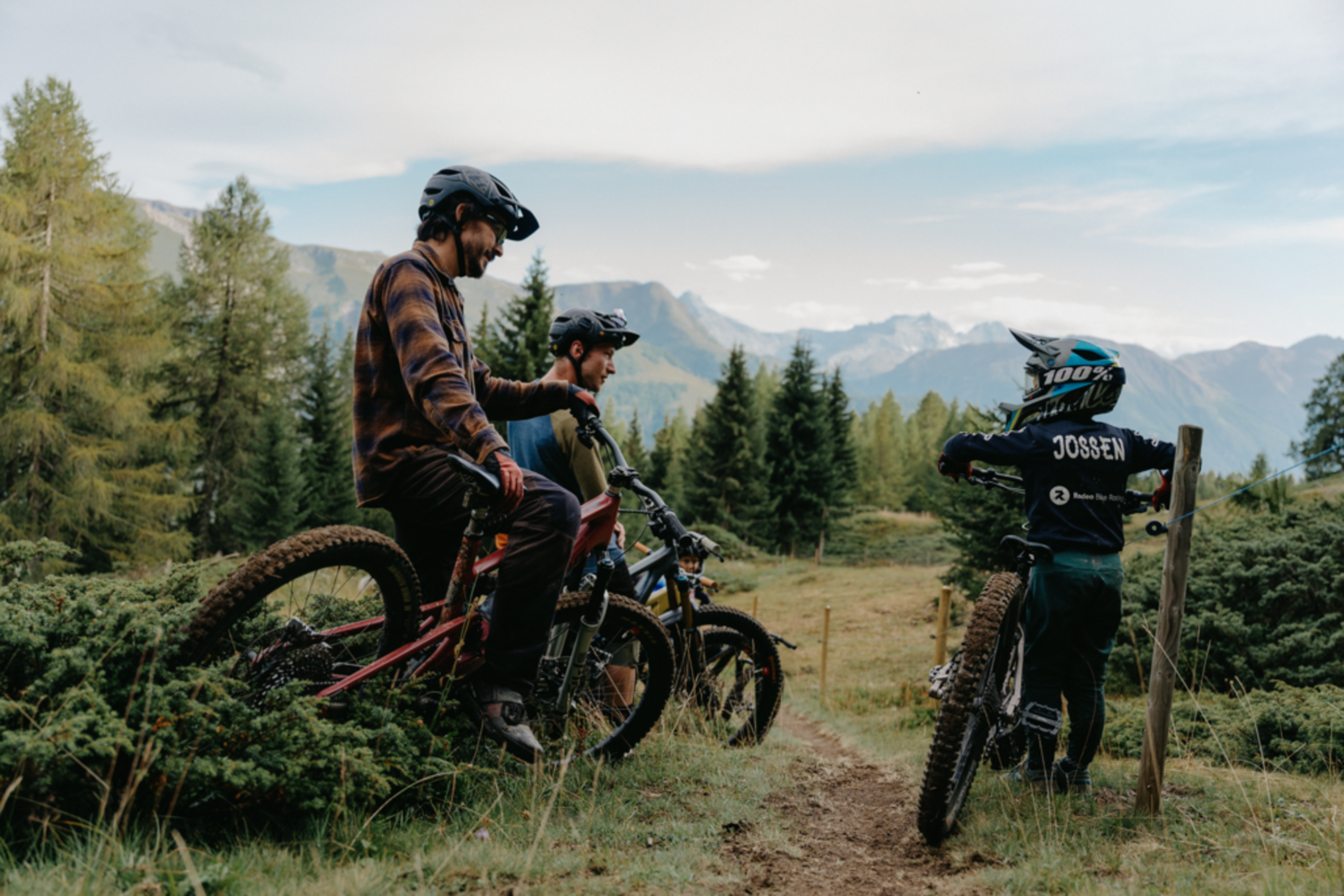 Es ist noch früh am Morgen, als Romeo und Kilian in die Pedale treten. Ihr Ziel ist der Bikepark in Bellwald, der sich vom Dorf bis auf über 2’500 m ü. M. erstreckt. Mit dem modernen Sessellift gelangen sie in wenigen Minuten zur Bergstation. Von hier oben ist der Blick in die Walliser Bergwelt noch eindrücklicher. Er reicht vom Matterhorn bis zuhinterst ins Goms, wo die Rhone entspringt. Routiniert und mit viel Eleganz fahren Romeo und Kilian die Kurven des Downhill-Trails herunter. Sie kennen die Strecke in und auswendig, waren sie doch erheblich an ihrer Umsetzung beteiligt. Sie selbst sind passionierte Biker und betreiben den Shop Rodeo Bike Co. in Bellwald sowie eine zweite Filiale in Brig.