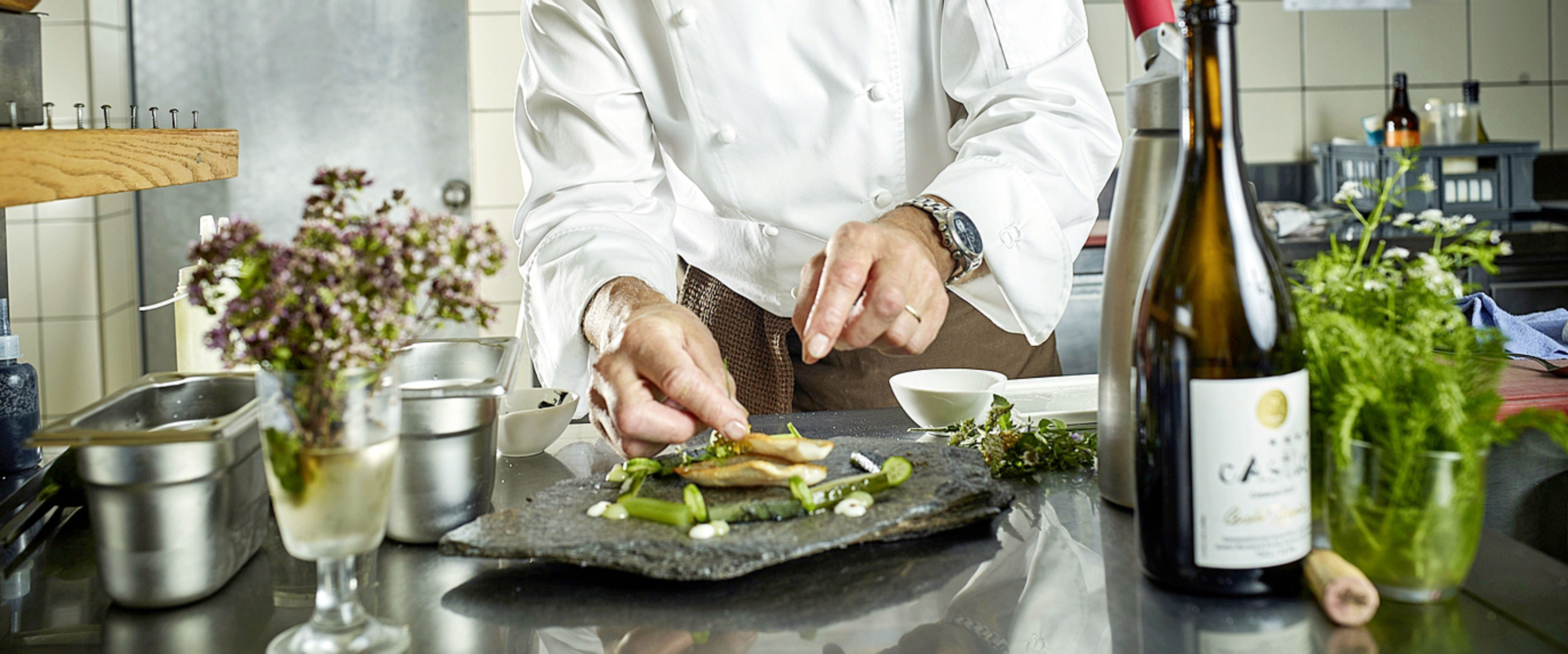 Am Herd zaubert er die Natur auf den Teller : Peter Gschwendtner vom « Castle » im Goms ist ein Naturbursche durch und durch.