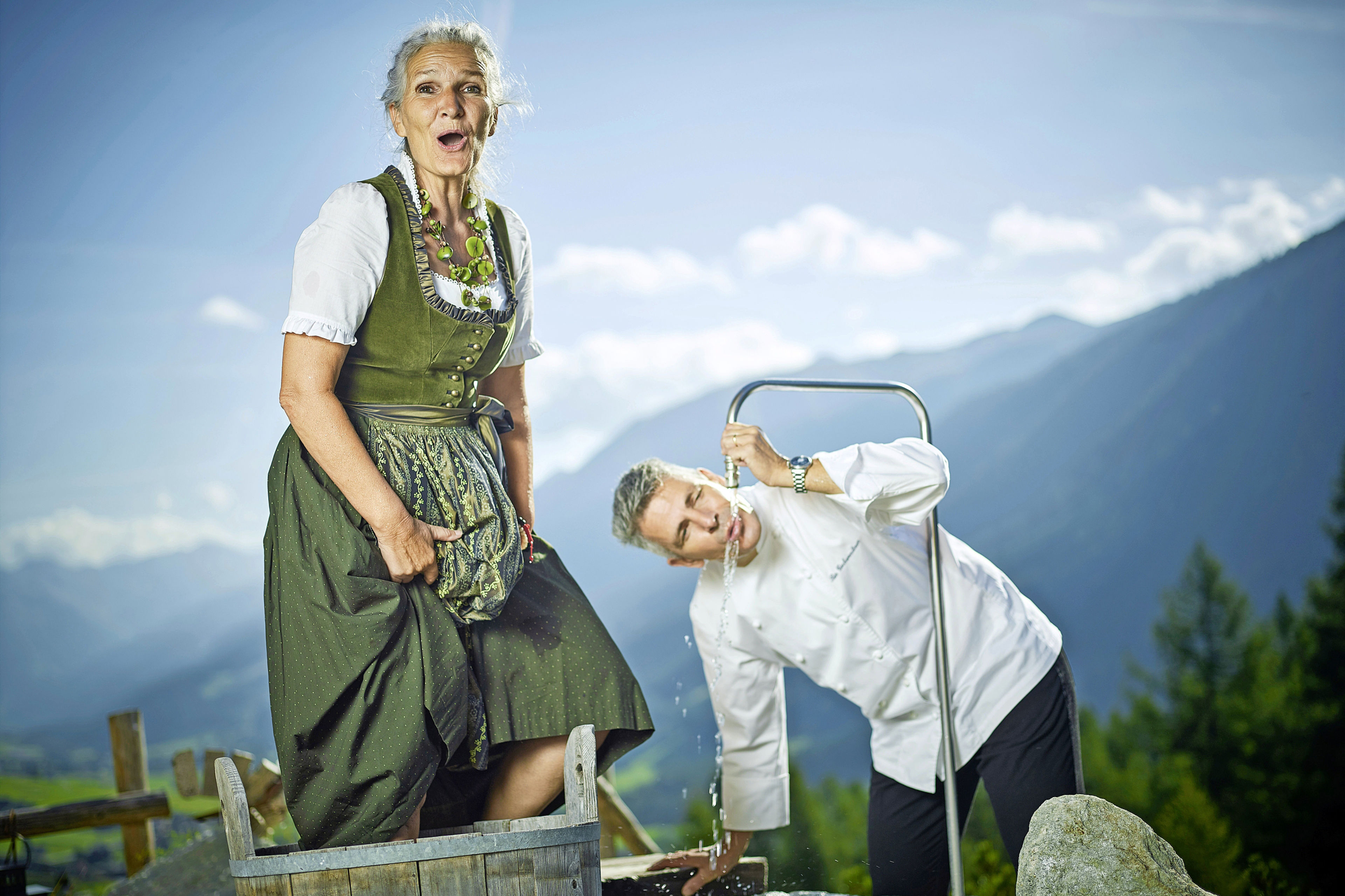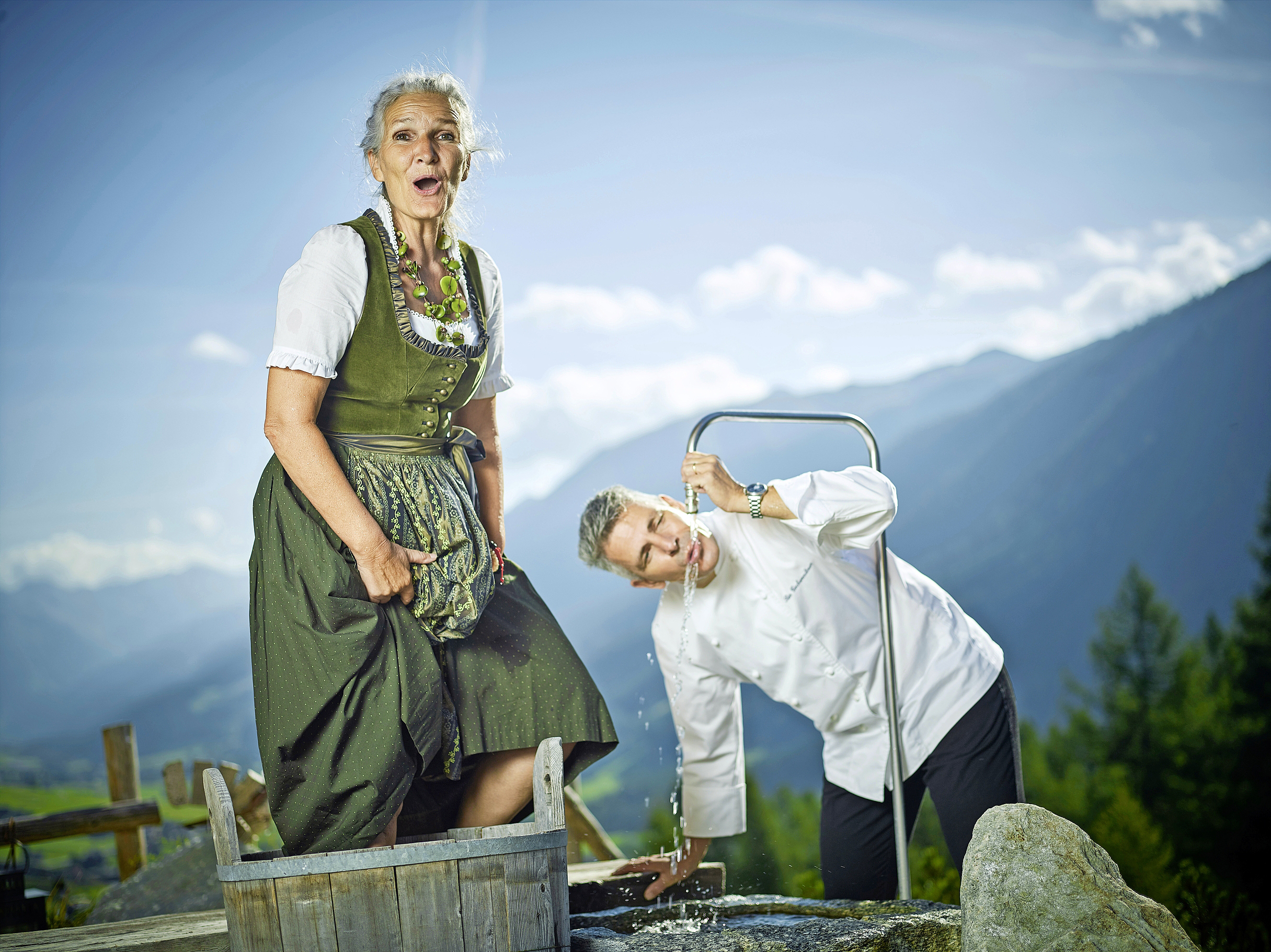 Die hat der aus dem tirolischen Going am Wilden Kaiser stammende gelernte Schreiner, Skilehrer und Bergführer schon vor langer Zeit im Goms gefunden. Zwei Naturschönheiten haben ihn hier Wurzeln schlagen lassen: das Tal und eine Einheimische. Die Brigitte, wie Gschwendtner in akzentfreiem Gommer Dialekt erzählt. Mit der schönen Brigitte hat er längst erwachsene Kinder, das Paar ist stolze Grosseltern, seit 22 Jahren führt es gemeinsam das «Castle». Aus dem einst maroden Appartement-Hotel, das in fünf Jahren drei Konkurse erlebt hat, schufen sie ein Bijou: eine Rundumwohlfühl-Oase für Gäste von nah und fern, ein Dutzend Arbeitsstellen fürs Tal und einen kulinarischen Hotspot für die Region. Und weil die ausgebildete Physiotherapeutin selber kaum Fleisch isst, werden auch Vegetarier im «Castle» glücklich. «Ein vegetarisches Fünfgangmenü auf Topniveau ist je nach Saison eine echte Herausforderung», weiss der Chef.