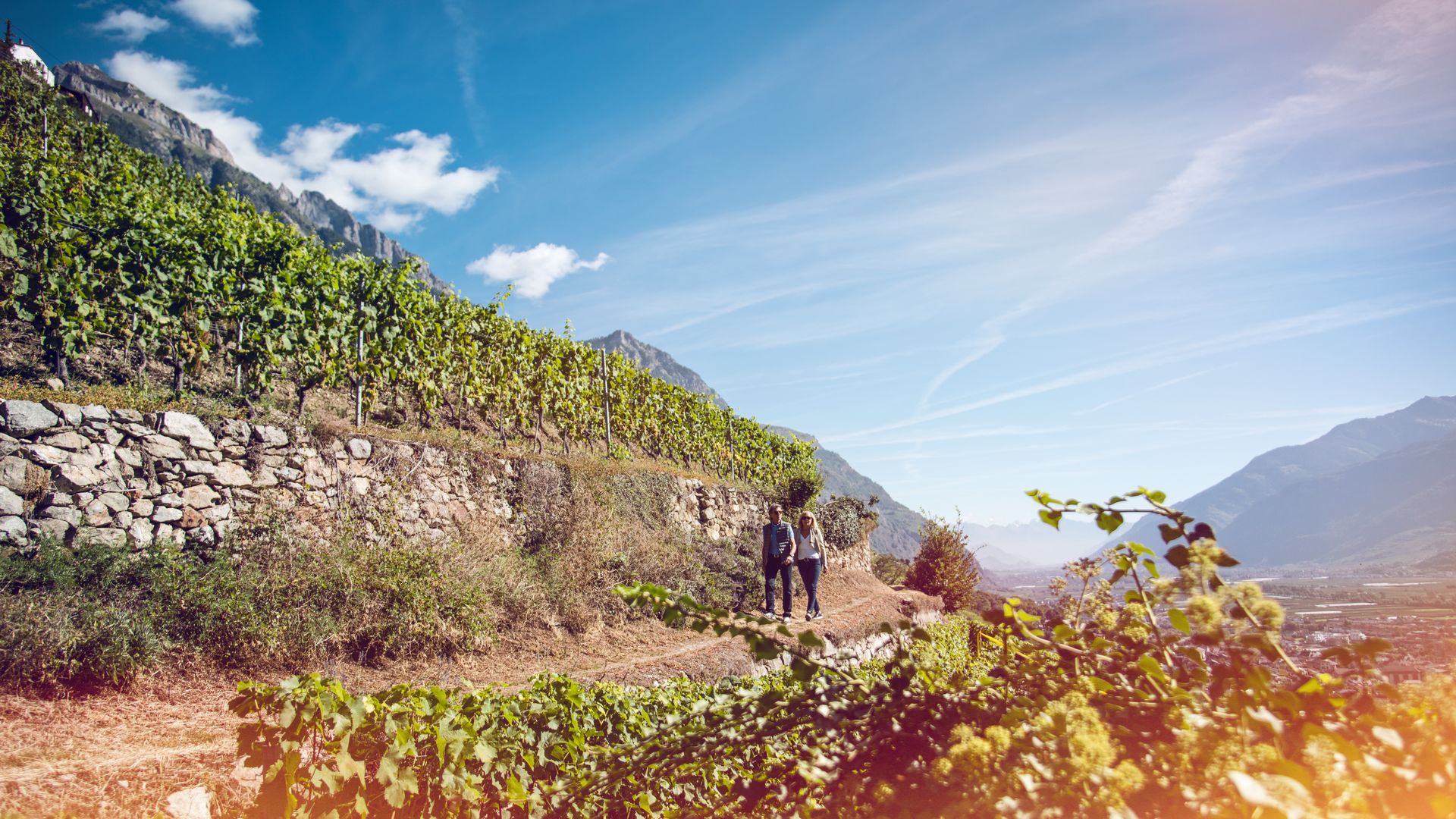 Der Weinbergweg, der Martigny mit Leuk verbindet, ist die ideale Gelegenheit, die Walliser Rebberge kennenzulernen. Zu Fuss oder mit dem Velo, ganz gemäss Ihrem Rhythmus erfahren Sie die verschiedenen Weinbau- und kulinarischen Allianzen entlang der Berghänge. Ein 82 km langer Weg führt Sie durch die Rhoneebene mit Blick auf das wunderschöne Panorama und die umstehenden alpinen Landschaften. Pauschalangebote bieten eine Kombination von Übernachtungen, Gepäcktransporten, Weindegustationen und typisch Walliser Mahlzeiten.