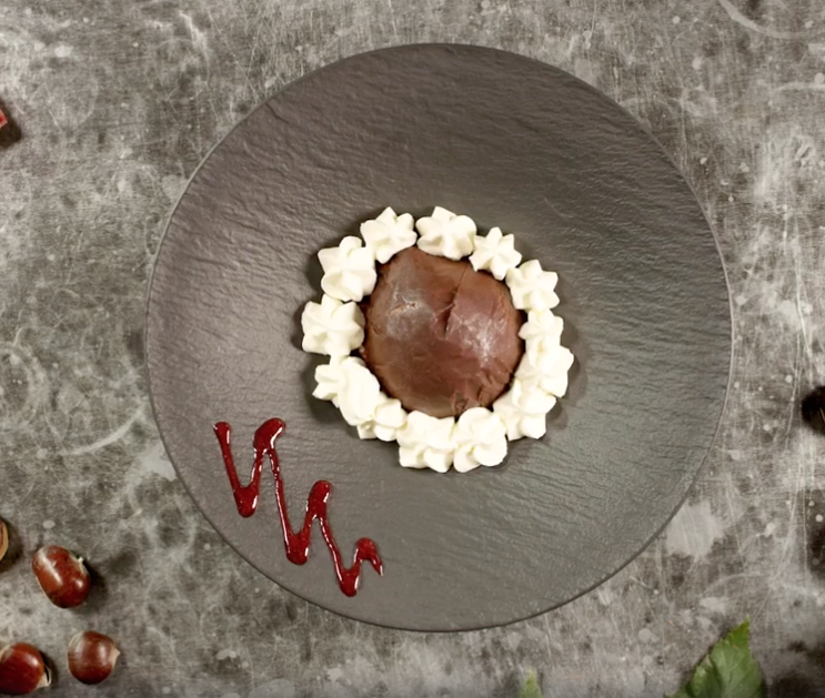 Bereits gekochte Kastanien verwenden, um Zeit zu sparen. Die Cakeform kann durch Schälchen ersetzt werden, um einzelne Desserts herzustellen.