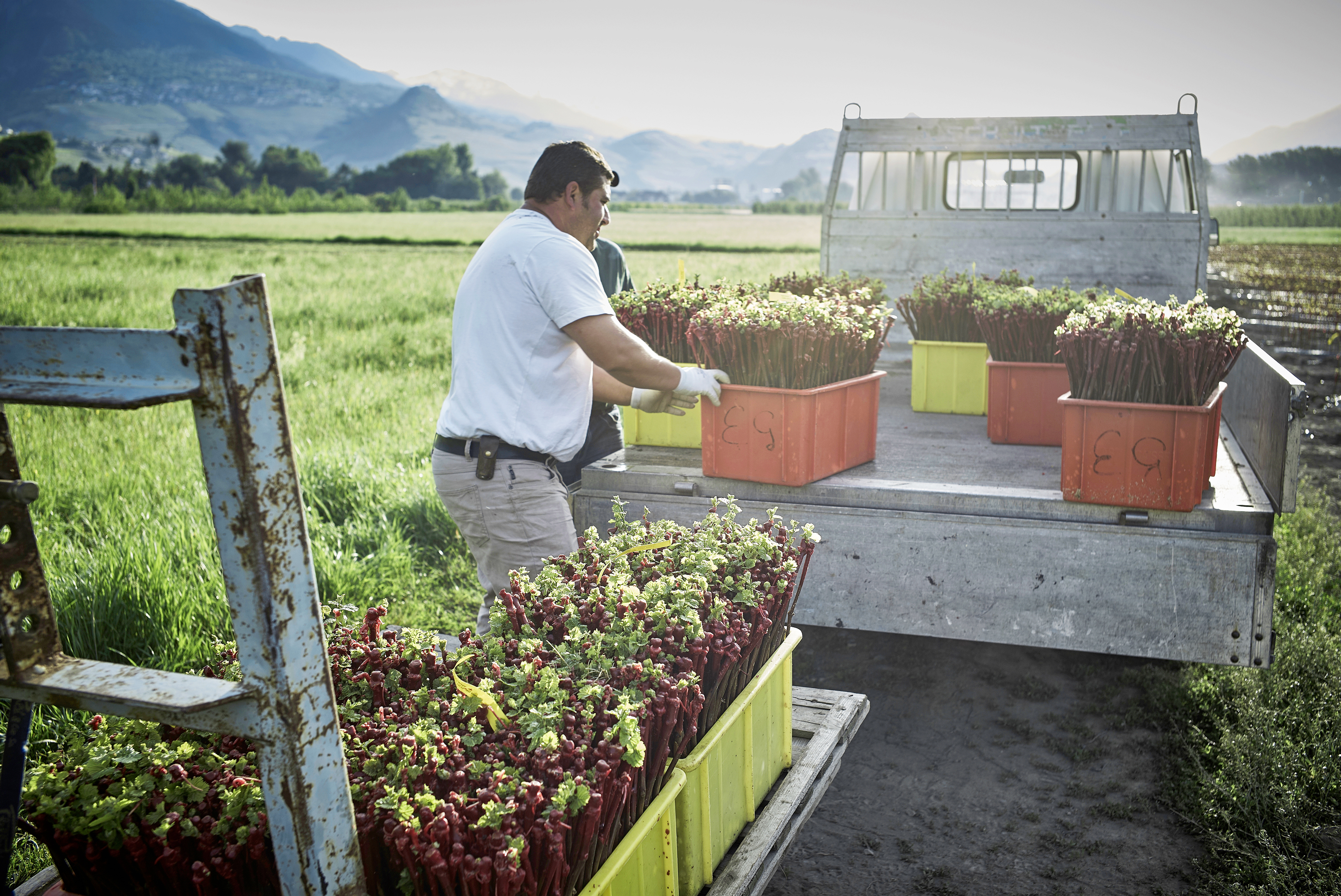 Ab ungefähr Mitte Mai kommen sie dann aufs Feld, wo sie den Sommer über gut zusammenwachsen können. Die Bewässerung erfolgt mit einem unterirdischen System, der Boden ist mit Plastik abgedeckt. Im November ziehen Germanier und seine Leute die Jungpflanzen sorgfältig aus dem Boden. Noch einmal wird jede Einzelne in die Hand genommen und mit Druck des Daumens überprüft, ob die Veredelungsstelle auch gut verwachsen ist. Zudem brauchen die Wurzeln einen Rückschnitt. «Meist gibt es zwanzig bis dreissig Prozent Ausschuss», so der Spezialist. In den Verkauf kommen rund 300 000 Stück. Und wie viel kostet eine Jungpflanze? «3.40 Franken», so Germanier.