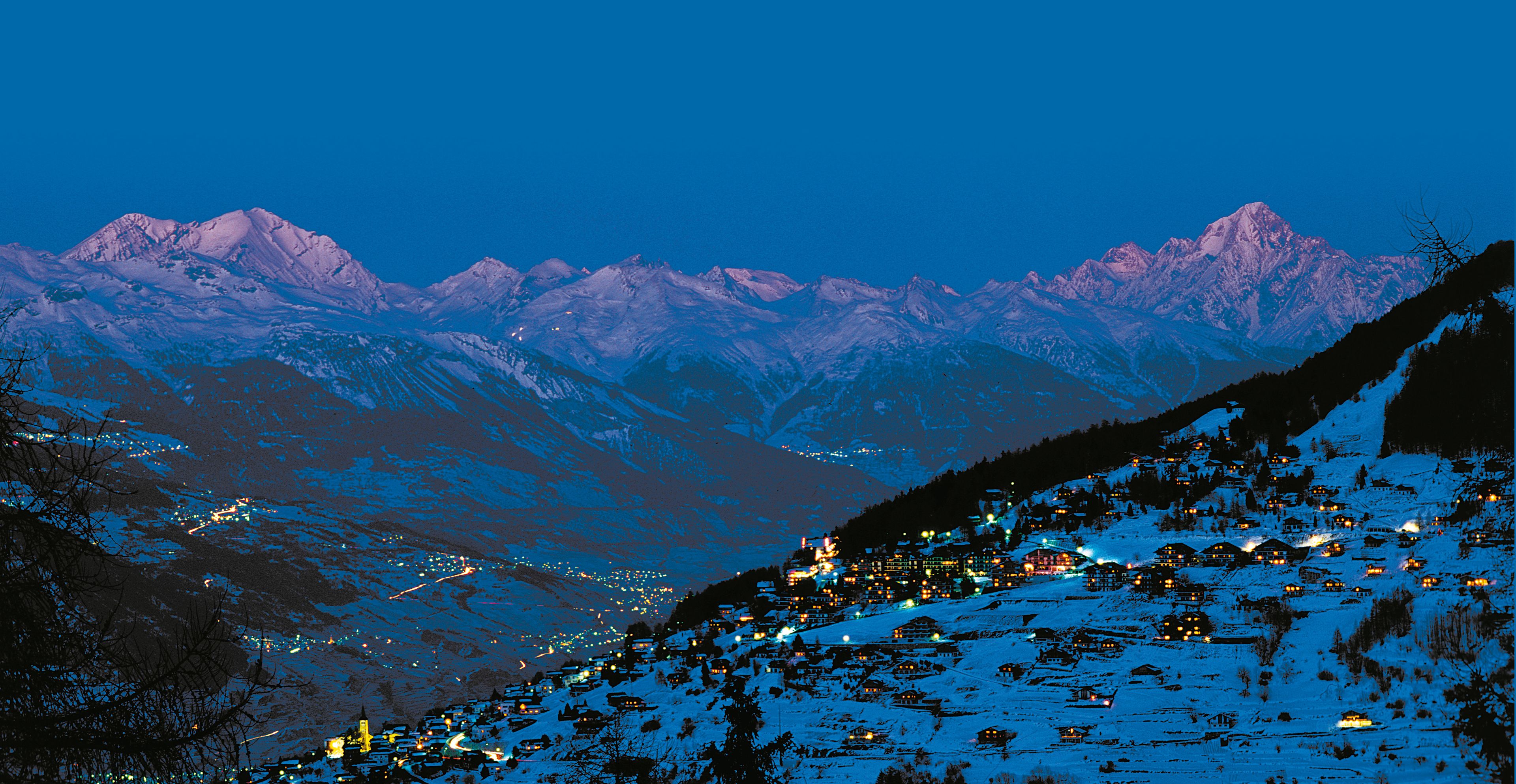 Veysonnaz in südlicher Hanglage über Sion schaut über das Rhonetal auf die Berner Alpen. Der Ort vereint die Ursprünglichkeit intakter dörflicher Strukturen mit modernen touristischen Infrastrukturen. Der traditionelle Alpaufzug des Viehs im Juni und die legendären Ehringer Kuhkämpfe sind so lebendig wie der Skiweltcup auf der «Piste de l’Ours» oberhalb von Veysonnaz. Wanderungen über geschütze Magerwiesen entlang sorgfältig restaurierter Suonen, offene Wasserleitungen aus dem 15. Jahrhundert, machen Veysonnaz genauso attraktiv wie der Anschluss an das riesige Skigebiet der «4 Vallées».