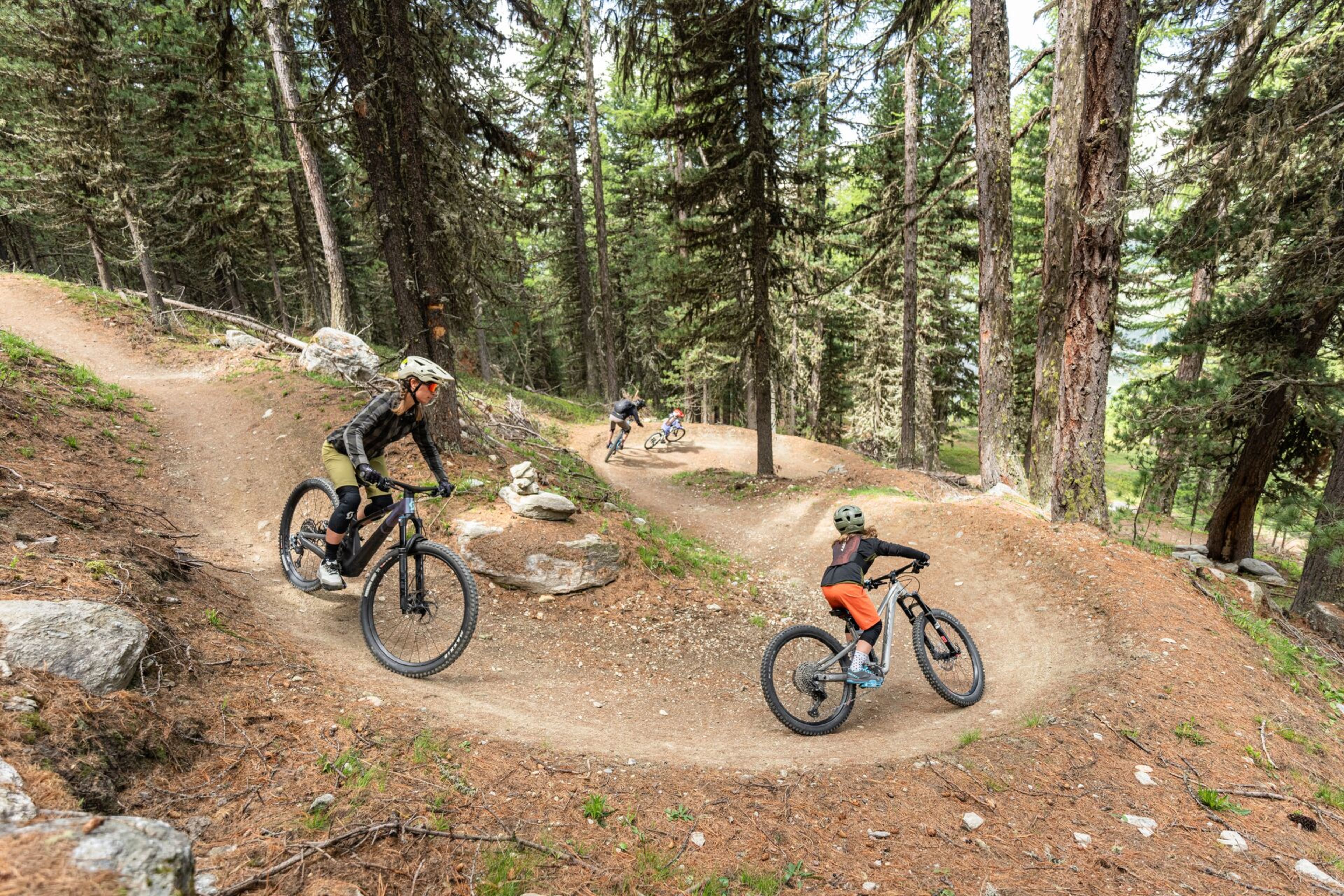 Set off from an altitude of 2,124 metres on a five-km cycling adventure. You'll go down narrow gravel trails through magnificent pine and larch forests and alpine pastures, with splendid views in between. The downhill course is a not-to-be-missed sporting experience for all mountain bike and e-bike enthusiasts. Once at the bottom, don't hesitate to climb back up to repeat the experience and gain confidence on a new descent.