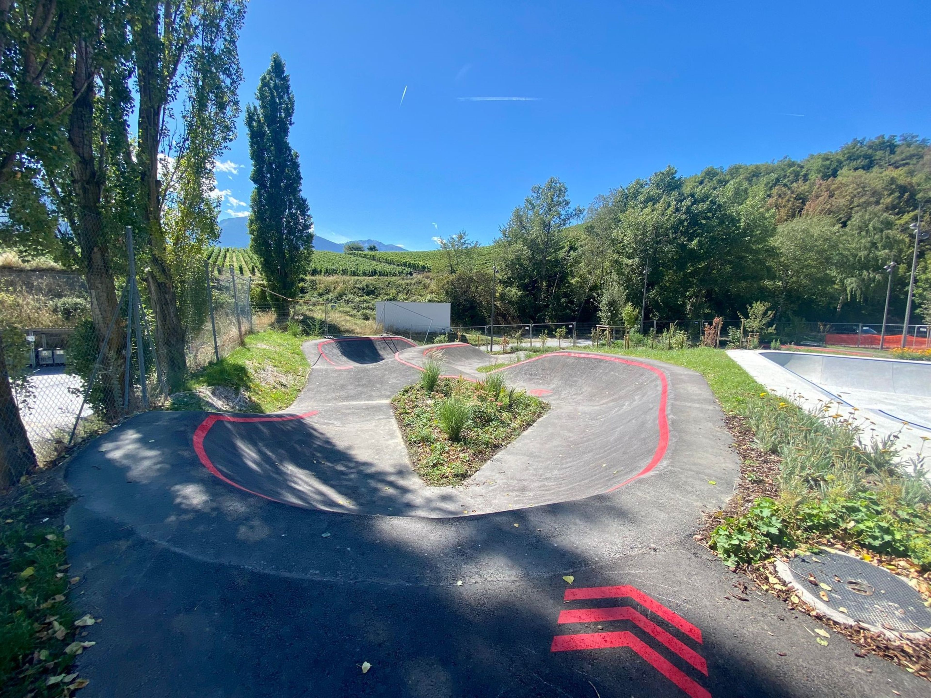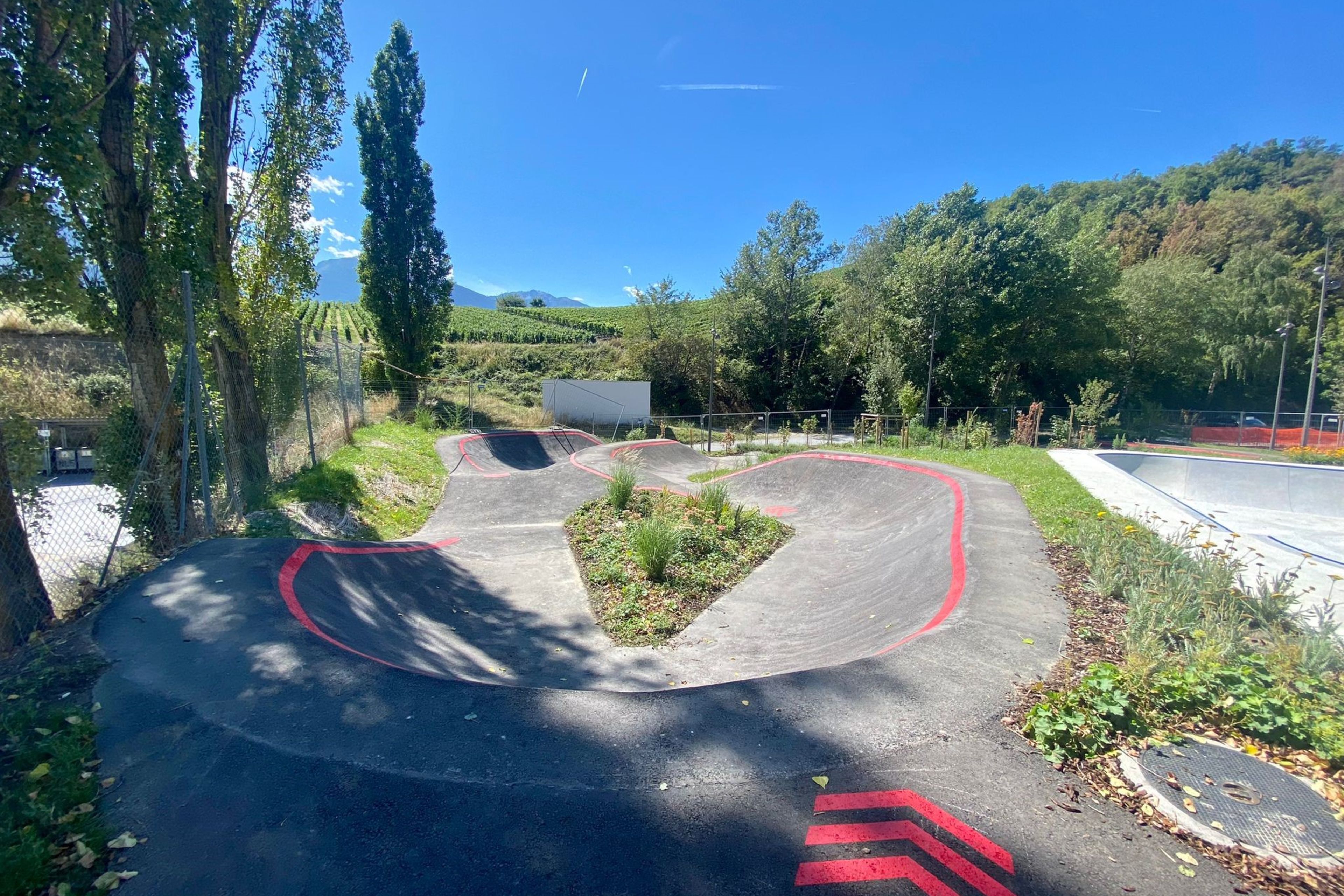 Located near the Miège football pitches, a pumptrack and a kidstrack have been added to the Hartes activity park. The 110 metre-long main pumptrack winds its way through landscaped knolls and trees providing pleasant shade. It is linked to the skatepark by a large start table overlooking the entire site. Just next door, the kidstrack is a great place for all board sports enthusiasts to practise while learning to master bumps and banked turns.