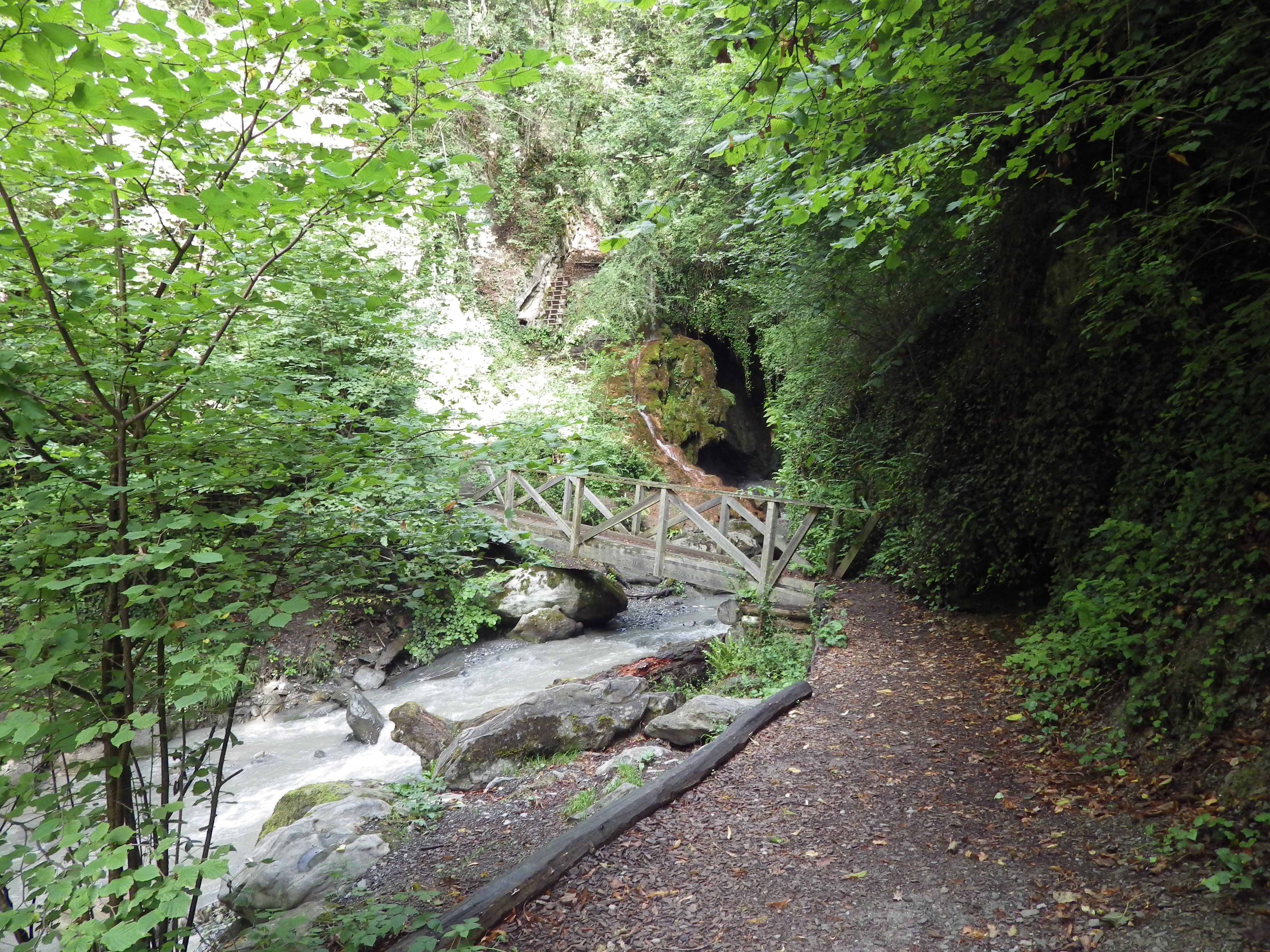 In the Salentze gorges, underneath the Farinet bridge, flows a warm water source, known already by the Romans, and currently used by the Saillon baths. A corner of well preserved nature, it is where the painter Gustave Courbet painted his piece "Caverne des géants", and is also where, in 1880, the police force cornered Farinet; it is probably that the fugitive, exhausted and starving, took a fatal fall; but rumour says that his pursuers may have killed him.