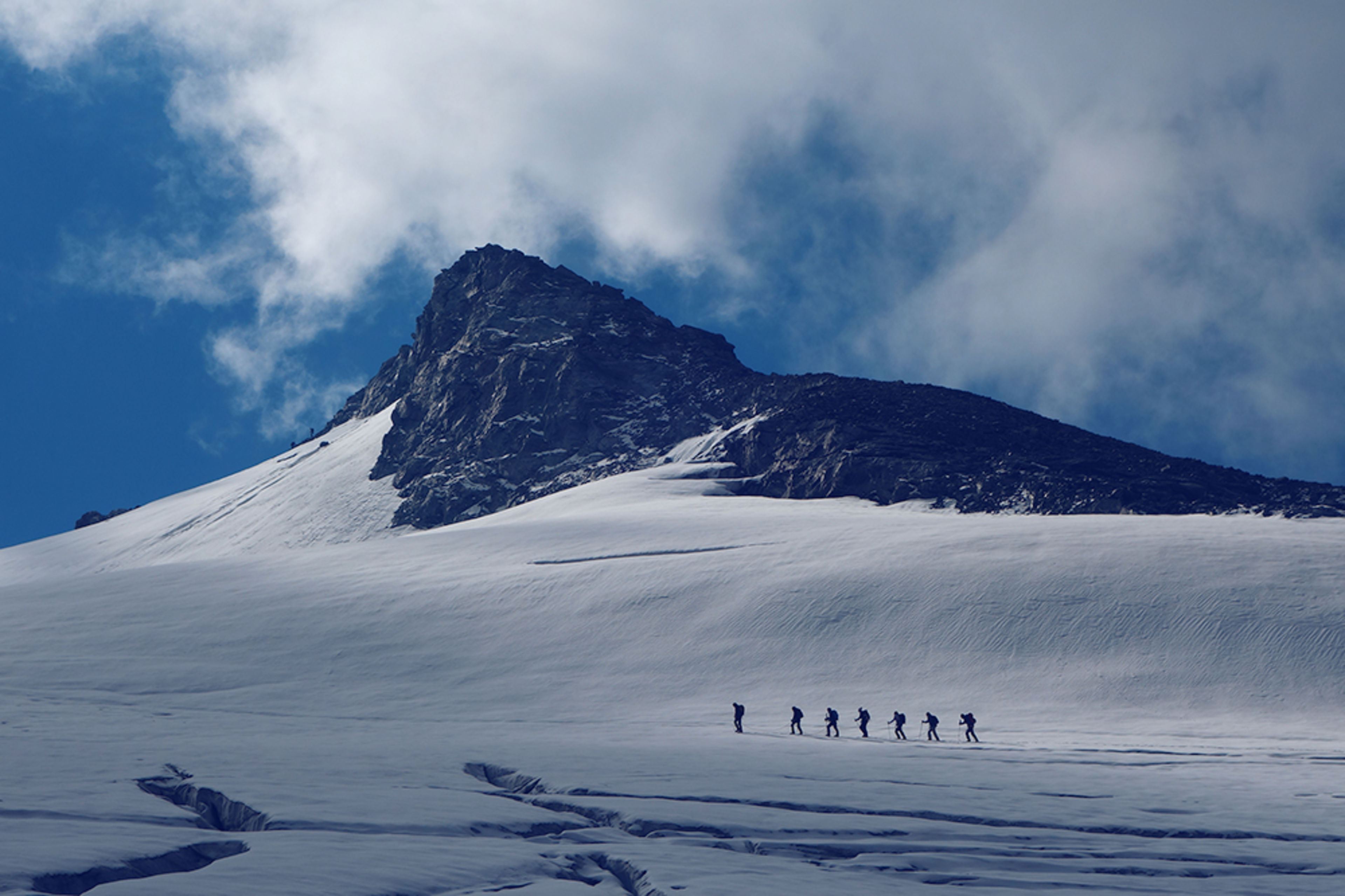 The Grand Désert is a 2.25 km long glacier situated on the Rosablanche, (the highest point of Nendaz) in the Alps in Valais. The Rosablanche, which is at an altitude of 3,336 metres, represents a very popular excursion, in summer as in winter. But no need to be an experienced mountaineer to get to the top. Accessible by a hiking tour from Lac de Cleuson or the Grand Dixence da mit can by reached by medium to good hikers. When reaching the glacier from Lac de Cleuson a rest at the border of the Grand Désert Lake which is feeded by the glacier is recommended.