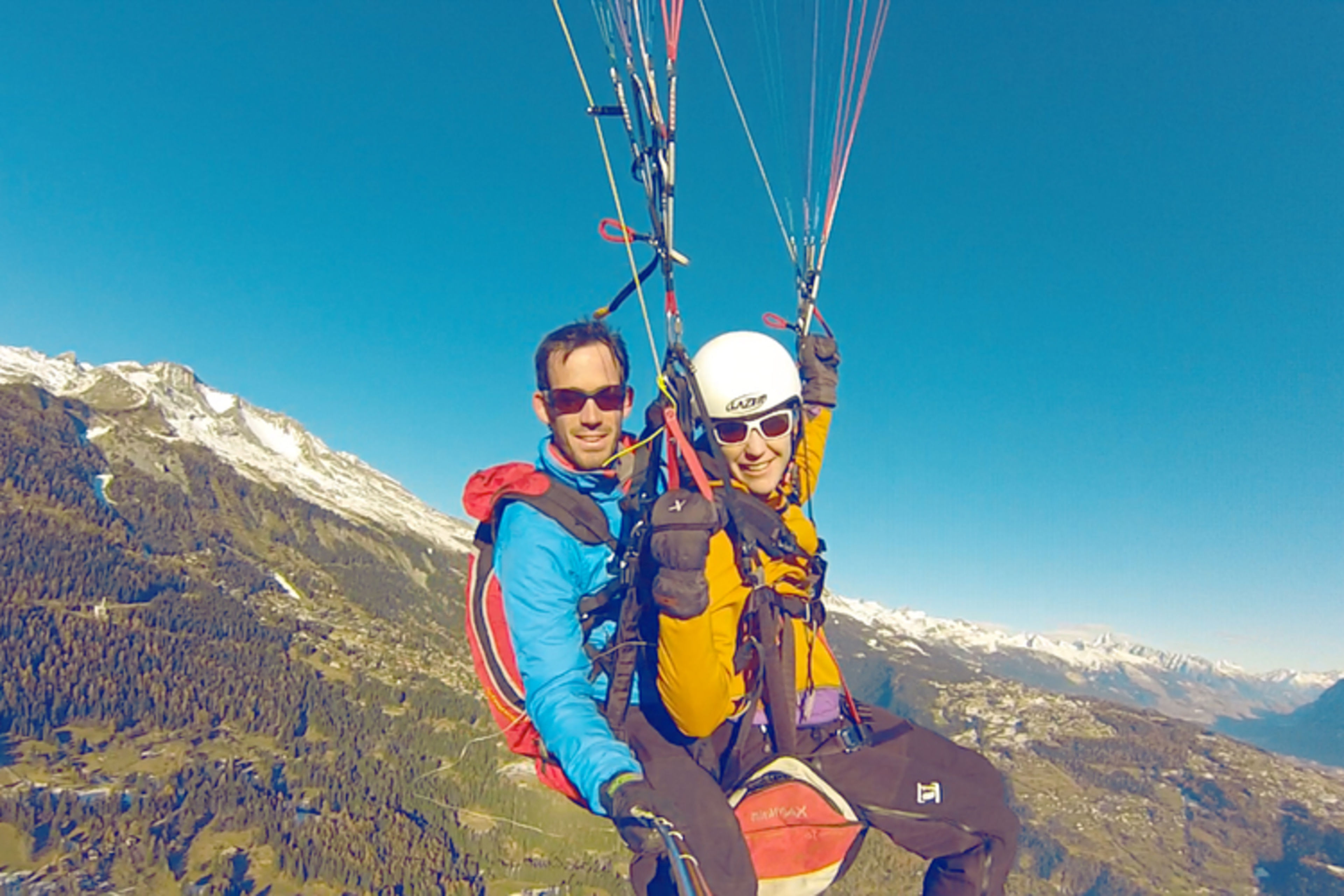 Do you ever wish you could fly like a bird? Willing to enjoy Crans-Montana and its surroundings view from above? All year round Flyin'high organises tandem flights on demand. Depending on the season and weather conditions, the departure is possible either from ski slopes (Bella Lui, Cry d'Err and Petit Bonvin) or from the station (Aminona, Aprily). Landing is possible either on the Lac Grenon or the golf course but also in Mollens and Sierre, if you wish to extend your flight a little bit.