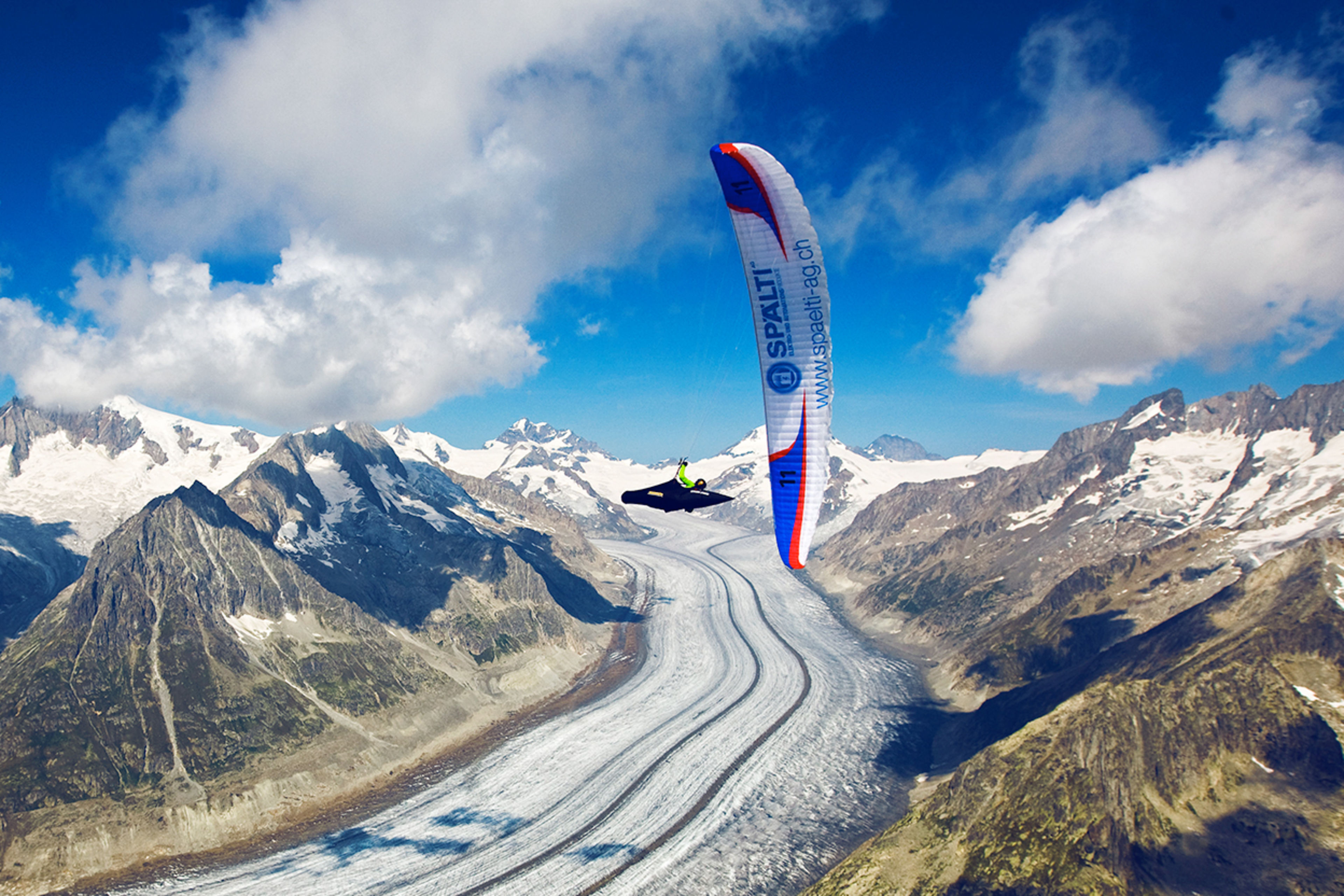 The paragliding school "Flyingcenter Oberwallis", founded in 1986, is an experimented organisation with a modern infrastructure. It offers unforgettable experiences for hikers such as experimented paragliders. Fly over the Aletsch Region either with a tandem flight or with the special offer "Fly & Hike" with a 4 hour hike to reach the starting point.