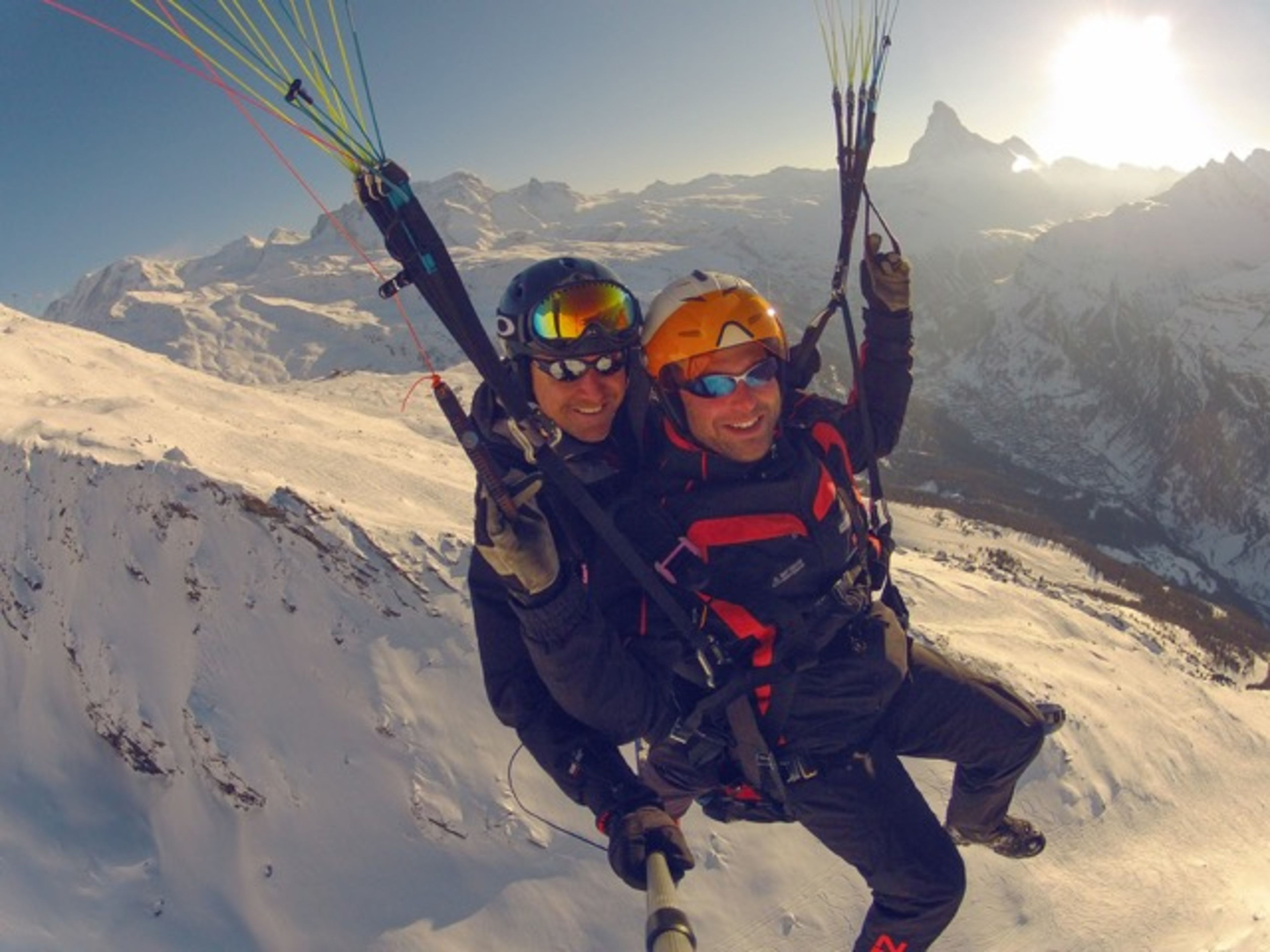 Tandemflights offers tandem flights in the whole Upper Valais. Take off with tandemflights and discover Valais' mountains from a new and breathtaking perspective. Fly with the eagles over glaciers, mountain lakes and the impressive mountains. From the Matterhorn to the Aletsch Glacier is a paraglider Mecca. Security comes first at tandemflights, the pilots educate oneselves regularly and only modern and certified equipment is used.