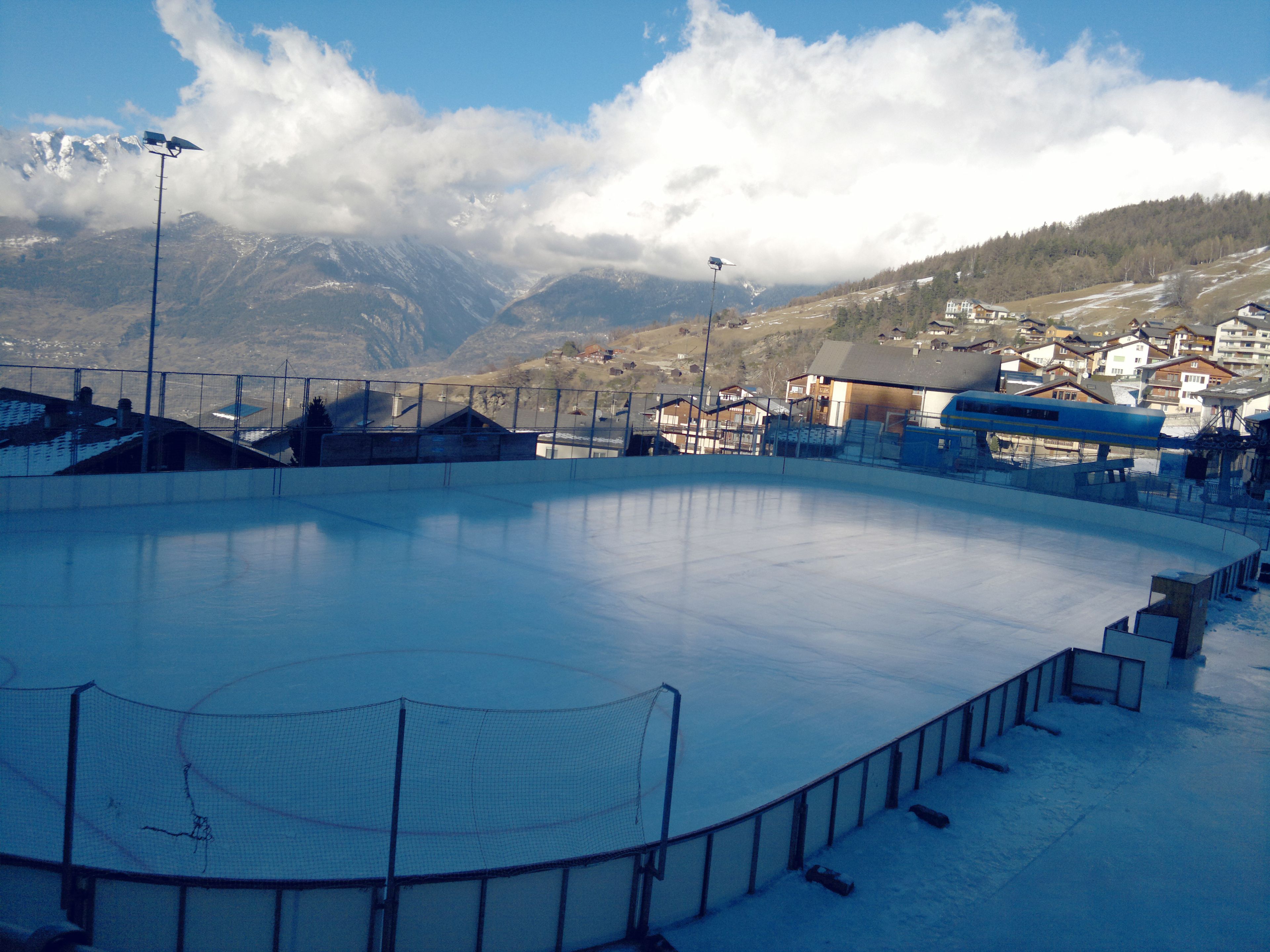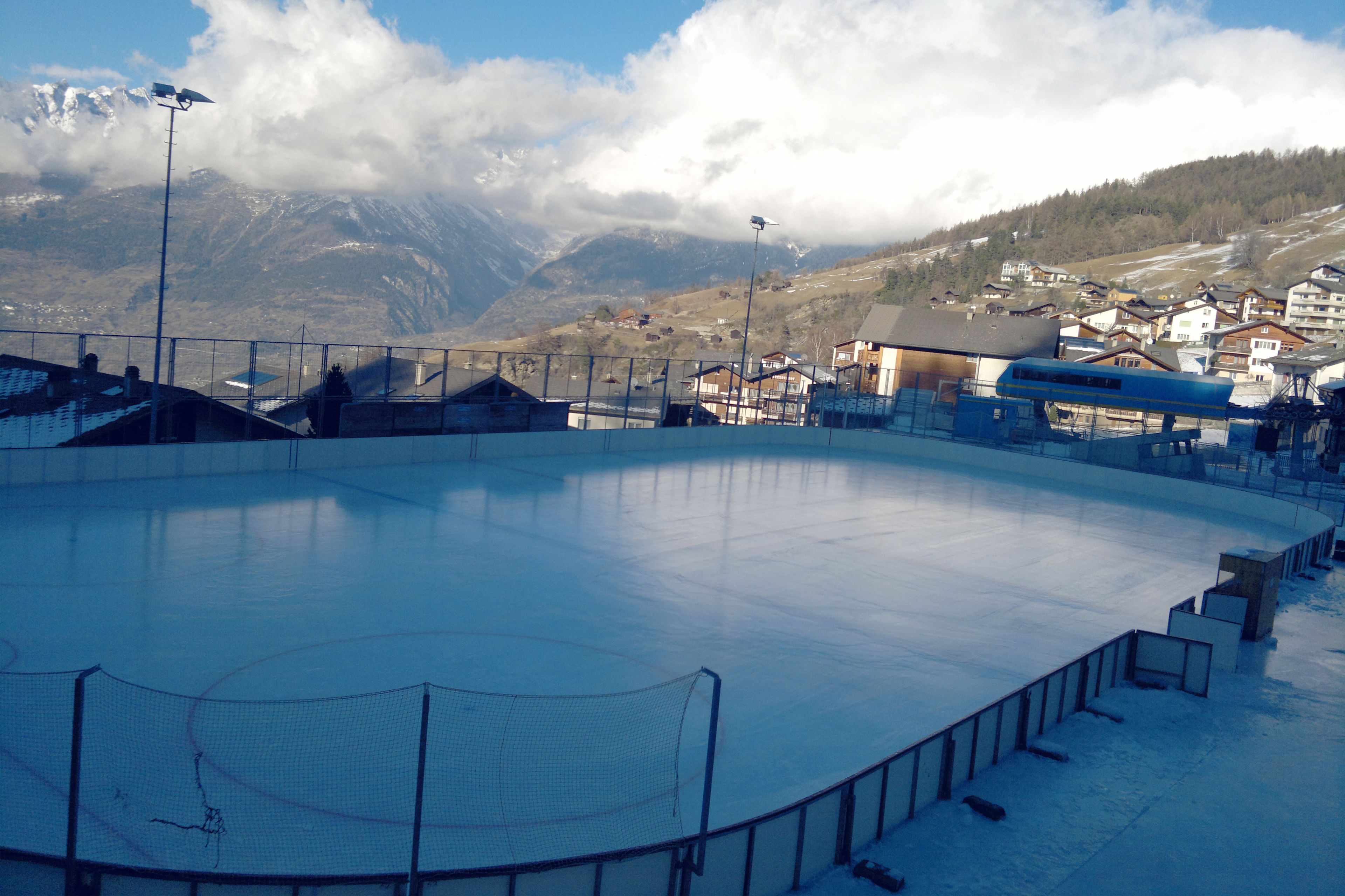 Ice skating for everyone in the centre of the village of Visperterminen. The natural ice rink Bodumatte is maintained by the local ice hockey club and is free for everyone.
