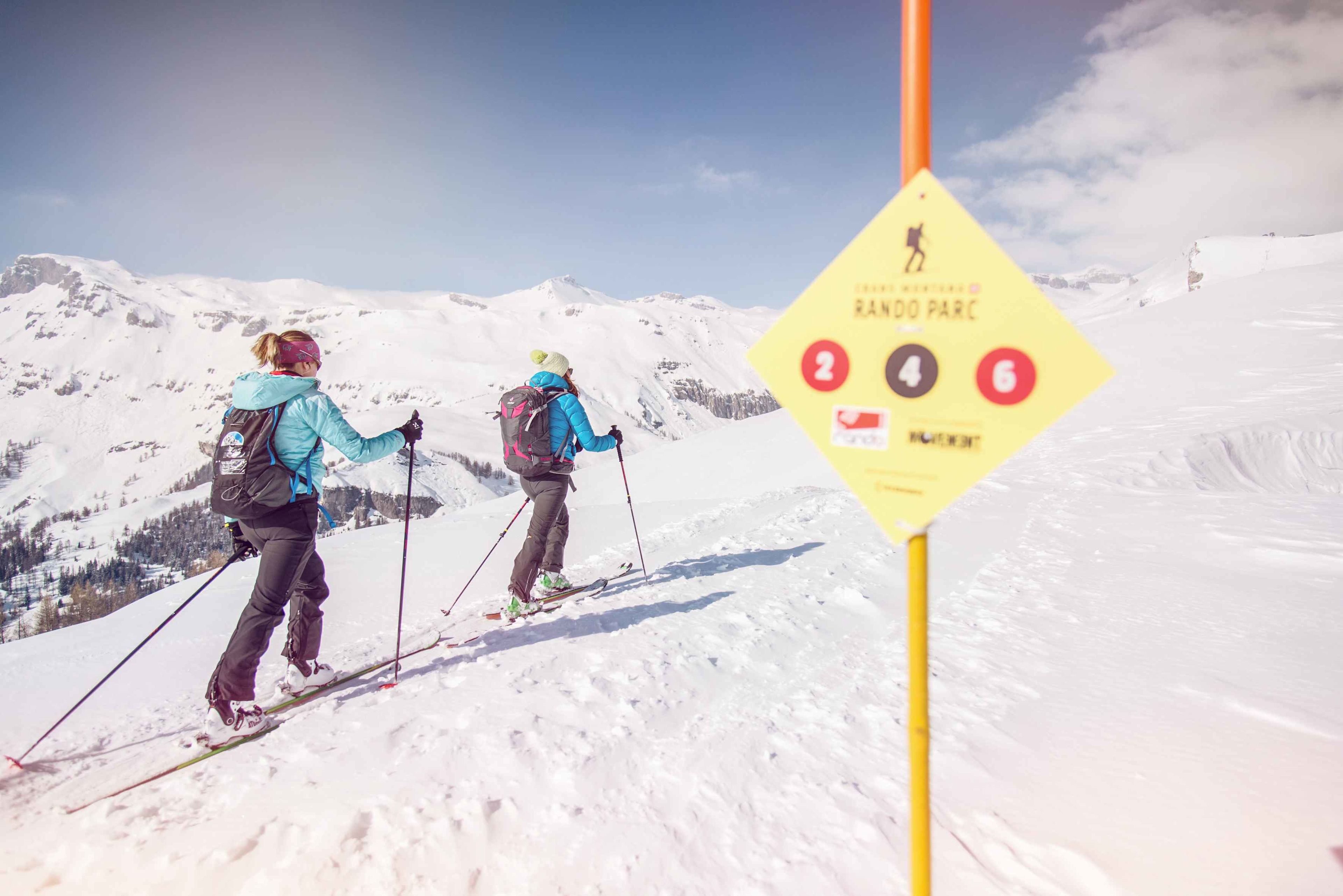 The new "Rando Parc" in Crans-Montana is subjugating ski hikers' heart: 16 itineraries were recently set up spreading out over more than 40 kilometres of secured and marked paths. The ascending elevation of this unique park is higher than 8,000 meters. Thanks to the various tracks' levels, blue, red, and black, the area is adapted both for beginners and experts. While novices can explore the initiation trail, experienced ski trekkers can defy themselves on the "Great Challenge" route, that comprises about 3,000 meters of ascending elevation and four uphill paths. These various trails were conceived in collaboration with the ski mountaineering champion and Crans-Montana's ambassador Séverine Pont-Combe.