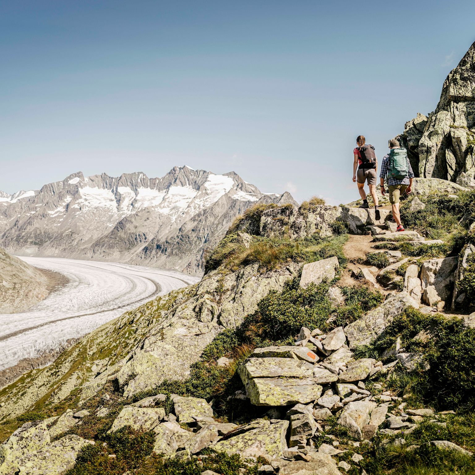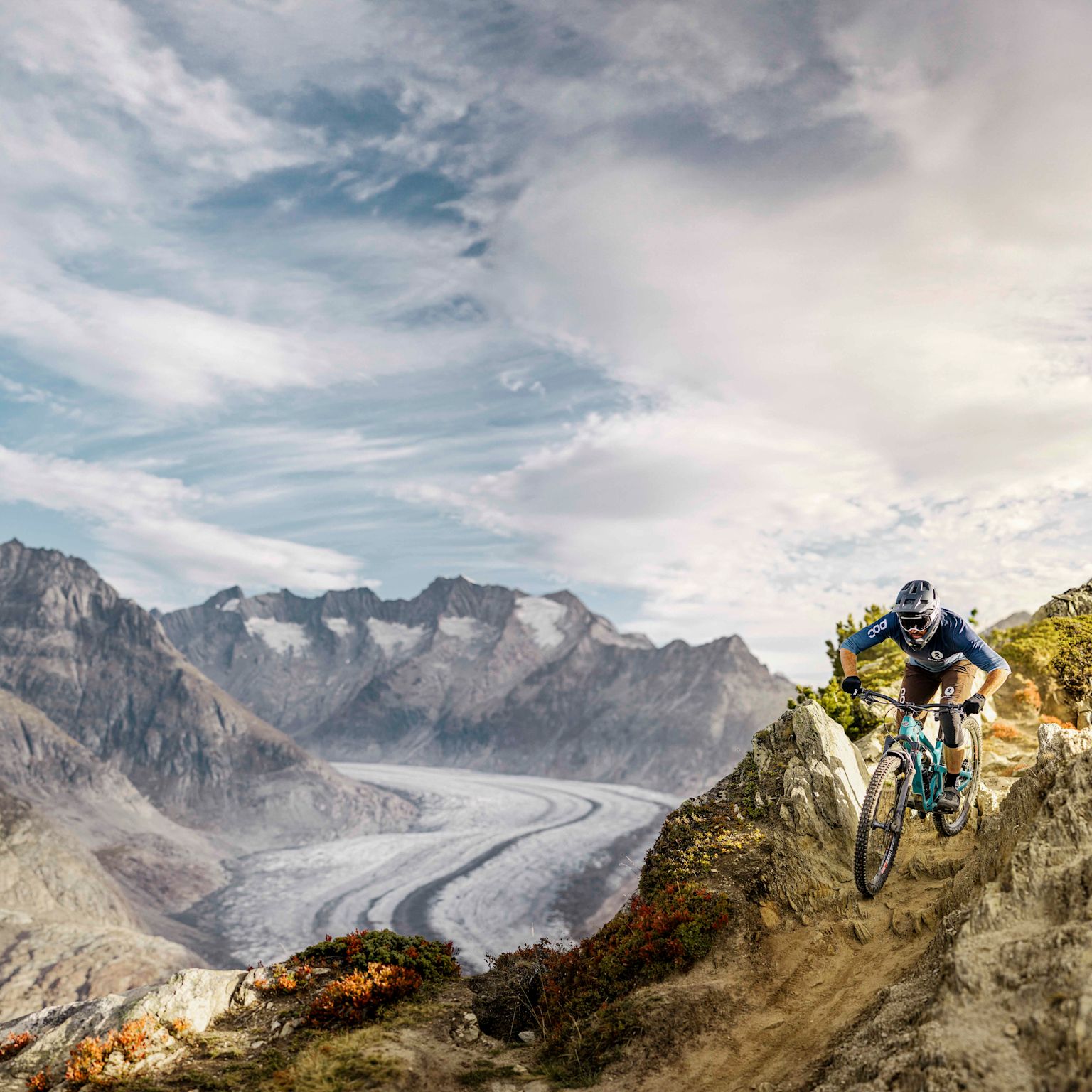 A majestic panorama with numerous 4,000-metre peaks and breathtaking views of the great Aletsch glacier, over 100 kilometres of varied routes and invigorating mountain air: all this (and more) awaits fans of the great outdoors in the mountain-biking eldorado known as the Aletsch Arena / Bellwald. Sports enthusiasts are sure to find what they are looking for on the slopes of the ski area, on the hiking trails combining fragrant forests and impressive suspension bridges or on the many mountain bike routes, such as the Stoneman Glaciara route with its 4,700 metres of vertical drop, or the many trails and flowtrails in the heart of the UNESCO World Heritage Site. The varied trails at the Bellwald bike park offer an epic experience for mountain bikers of all levels. In 2025, the Aletsch Arena / Bellwald also hosted the world's best mountain bikers on its network of demanding and spectacular trails during the UCI Enduro World Championships, E-Enduro and E-Mountain Bike Cross-Country.