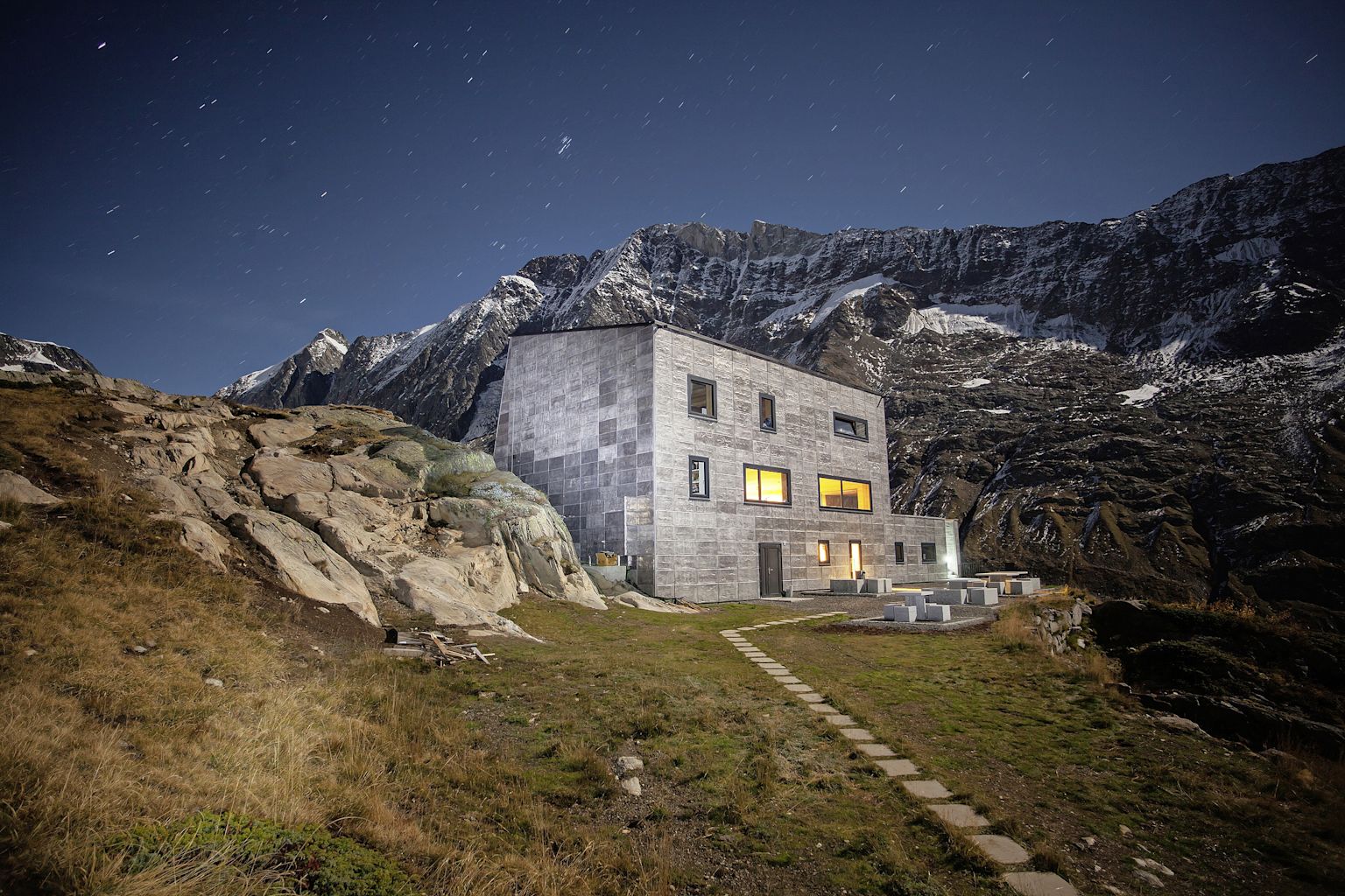 A small hydroelectric plant supplies the power needed to produce hot water and run the washing machine and coffee machine. Unlike other high-altitude huts, water is not brought in by helicopter. Running water comes from the stream that flows from the glacier, while drinking water is sourced from a spring a few hundred metres above the hut and fed down through pipes. Nevertheless, the project attracted a great deal of criticism. “A number of obstacles arose during the planning phase,” remembers Peter Tscherrig. “At certain times, I felt completely and utterly disheartened. And yet we now have one of the most admired huts in the Alps and the local inhabitants are very proud of it.”