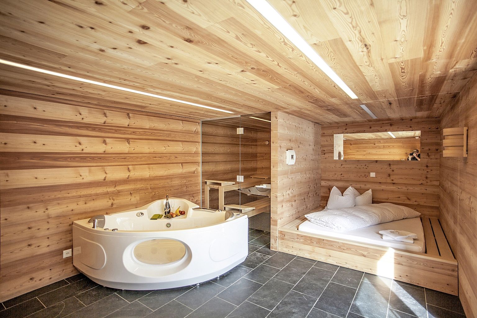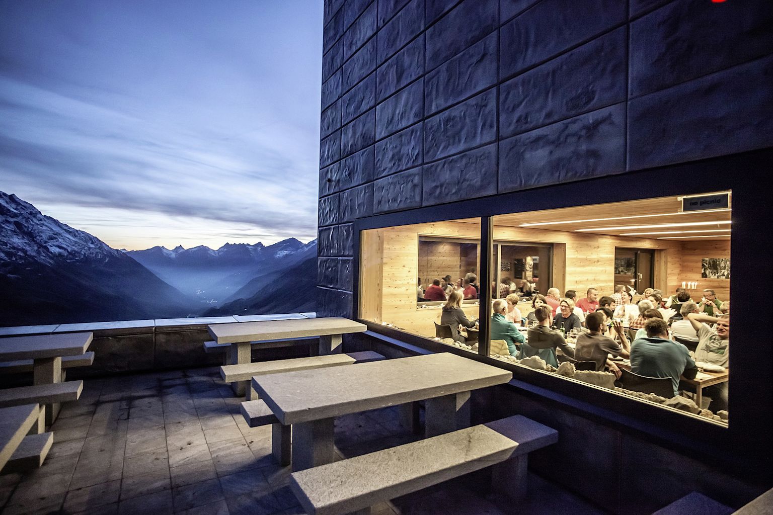 The hut receives hundreds of visitors a year, including large numbers of families. Most are hikers. Mountain climbers are rarer. The building can accommodate 50 people and boasts a wellness suite, a family suite (with its own shower and toilet) and three dormitories. The bed linen is changed daily. Newly-weds have spent their wedding night in the luxury suite and been presented with a bouquet of roses the next morning. A team of seven makes sure guests are well looked after: cleaning, making the beds and serving a four-course evening meal at long, shared tables – the kind of service you’d expect in a hotel, not in a mountain hut!