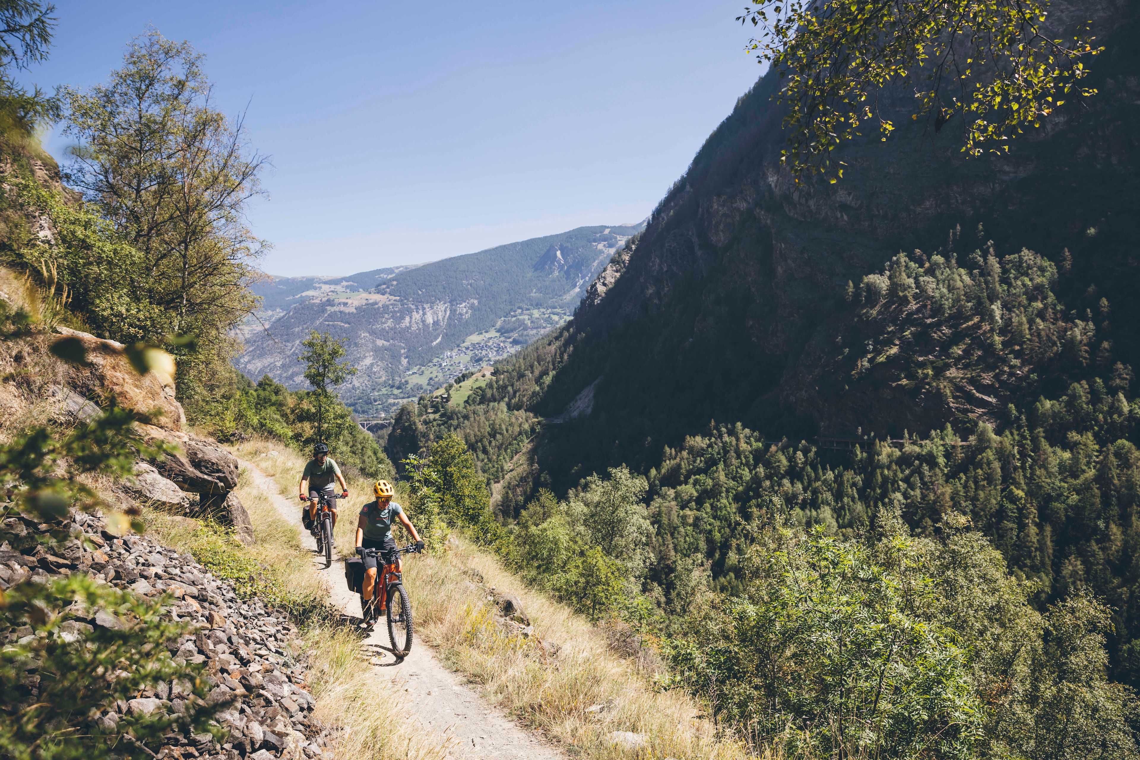 The last stage of the Glacier Bike Tour is an unforgettable experience, with the finish getting closer with every pedal stroke. From Visp, spectacular paths lead through terraced vineyards, charming mountain villages and along historic mule tracks. Impressive views open up again and again – of the Weisshorn, Klein Matterhorn and Breithorn. And towering above everything is the grand finale: the Matterhorn. It is still shyly hidden, but with every metre of altitude through the Mattertal, the iconic landmark draws closer. The arrival in Zermatt is a moment of fulfilment and pure joy. The legs may be tired, but the heart is filled with lasting memories.