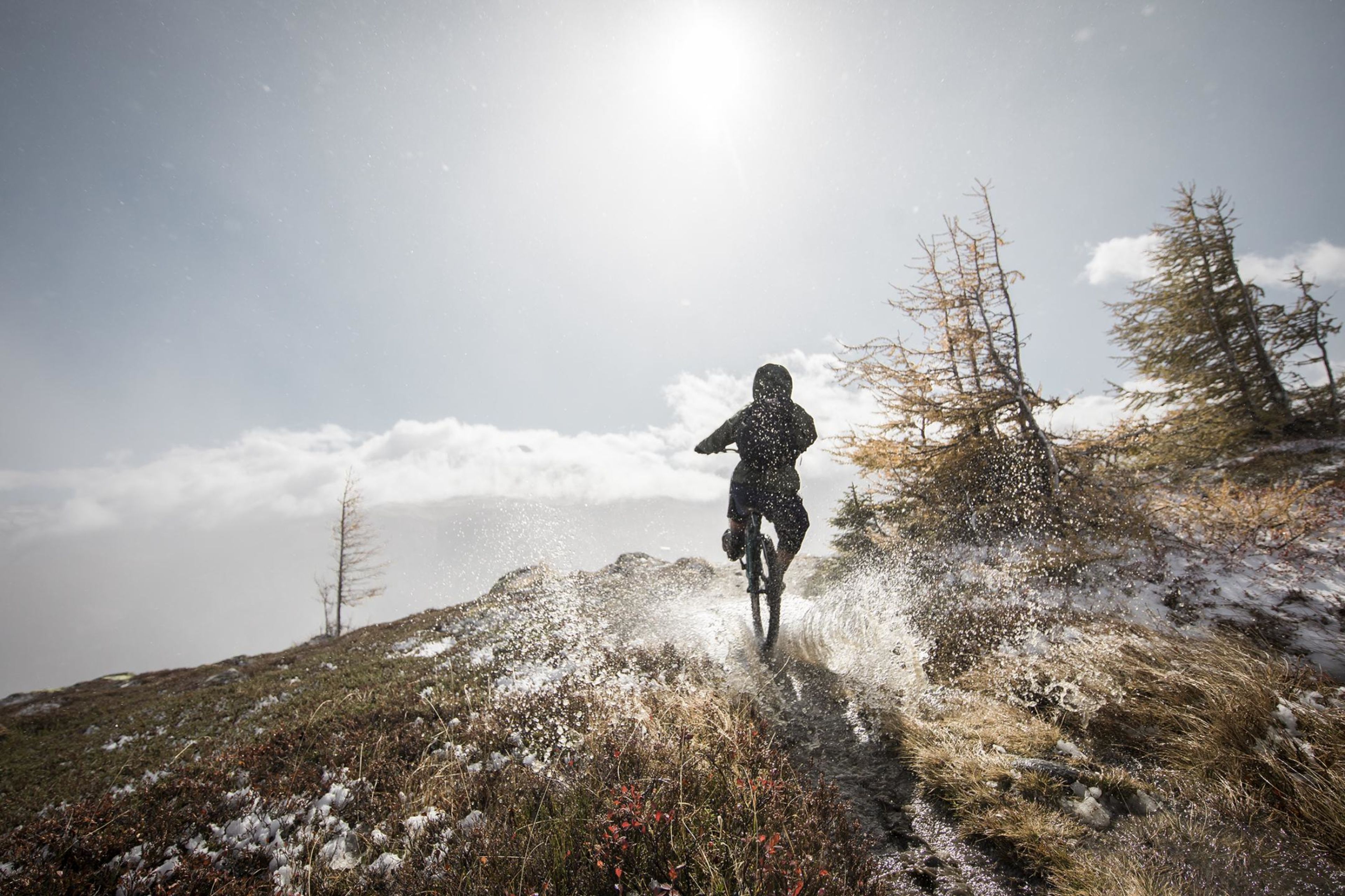 The early rise was immediately rewarded. As the sun rose over the mountains, it bathed the trails and scenery in an incredible light. The frost on the trails melted, and they became grippier again. Time to let go of the brakes.
