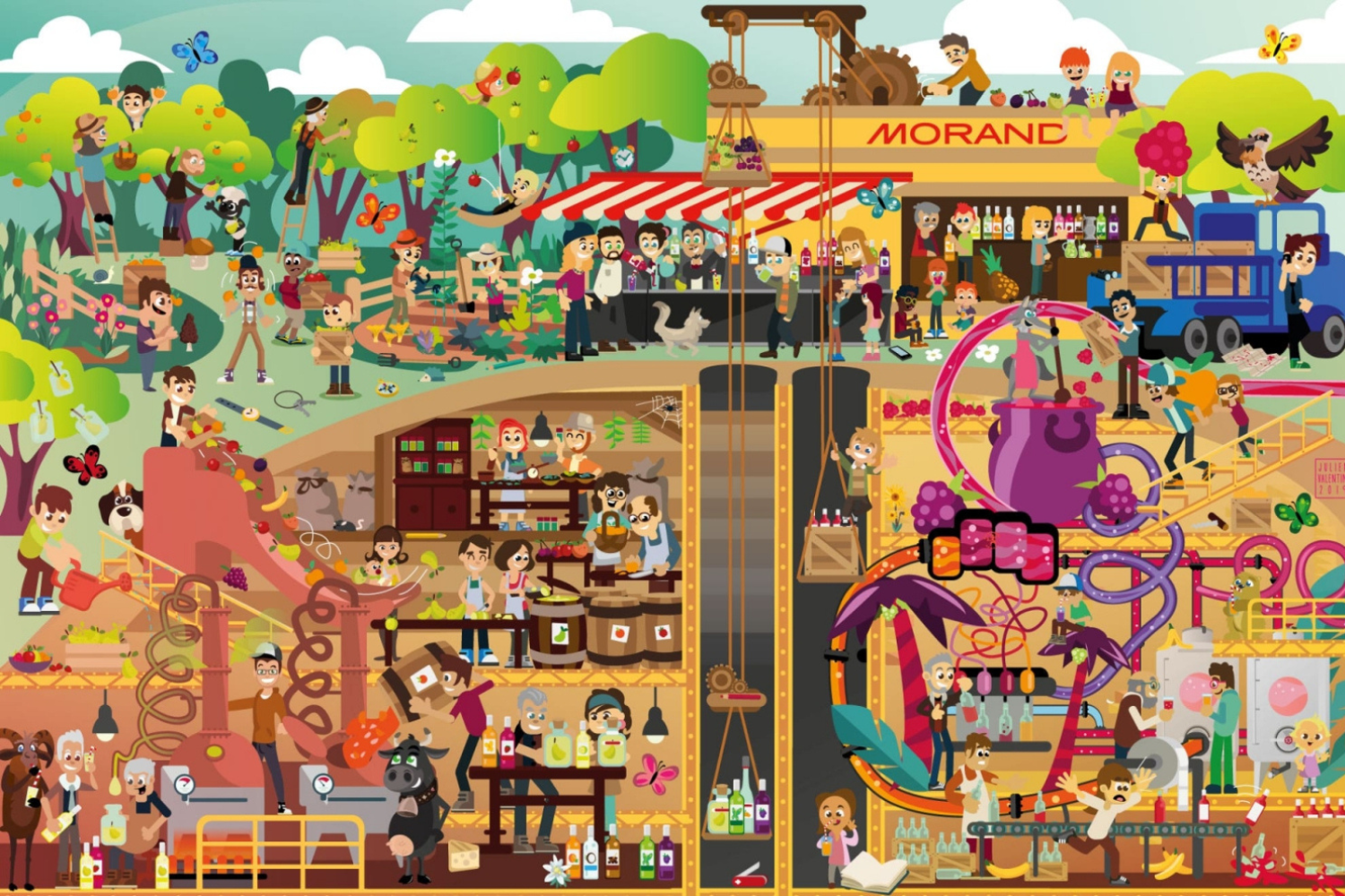 Here is your first mission as a new recruit to the marmot watch: you have 30 seconds to spot a raclette scraper, a cat cheering on a trail runner, a wolf who is a fan of BBC Monthey, an apricot juggler and a sheep preparing Syrah wine in this picture. On your marks! Get set! Go!