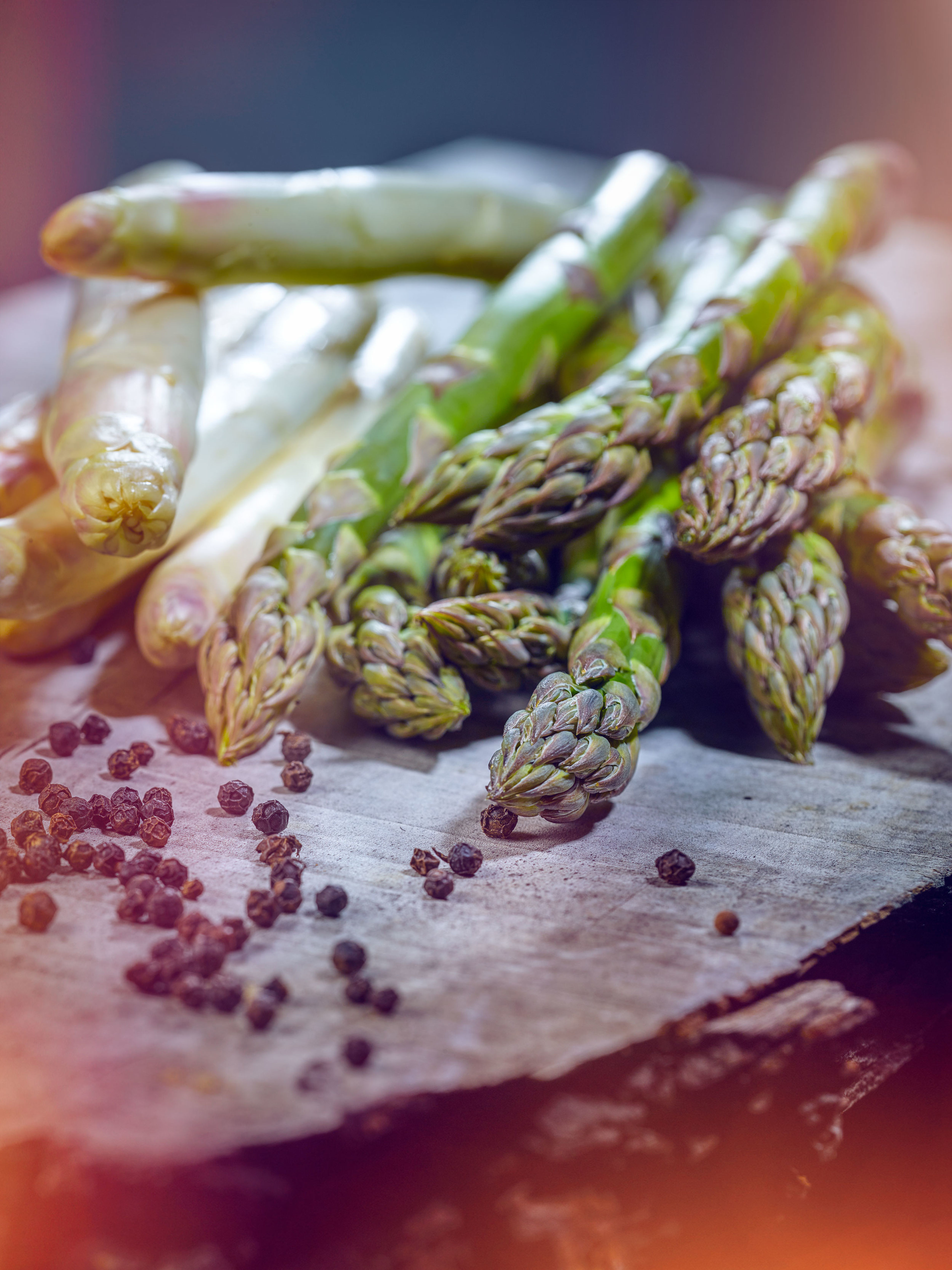 Add the asparagus pieces to the other vegetables, season with salt and pepper and deglaze with the Johannisberg. Leave to reduce for 2 to 3 minutes, then set aside.