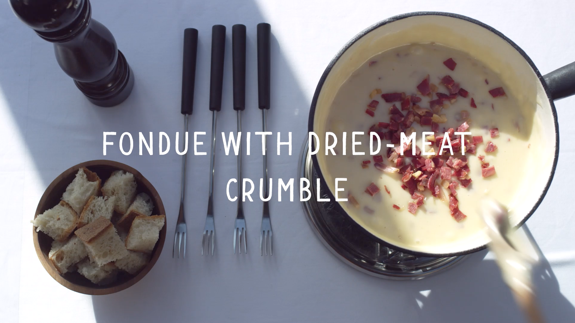 Fondue with dried-meat crumble