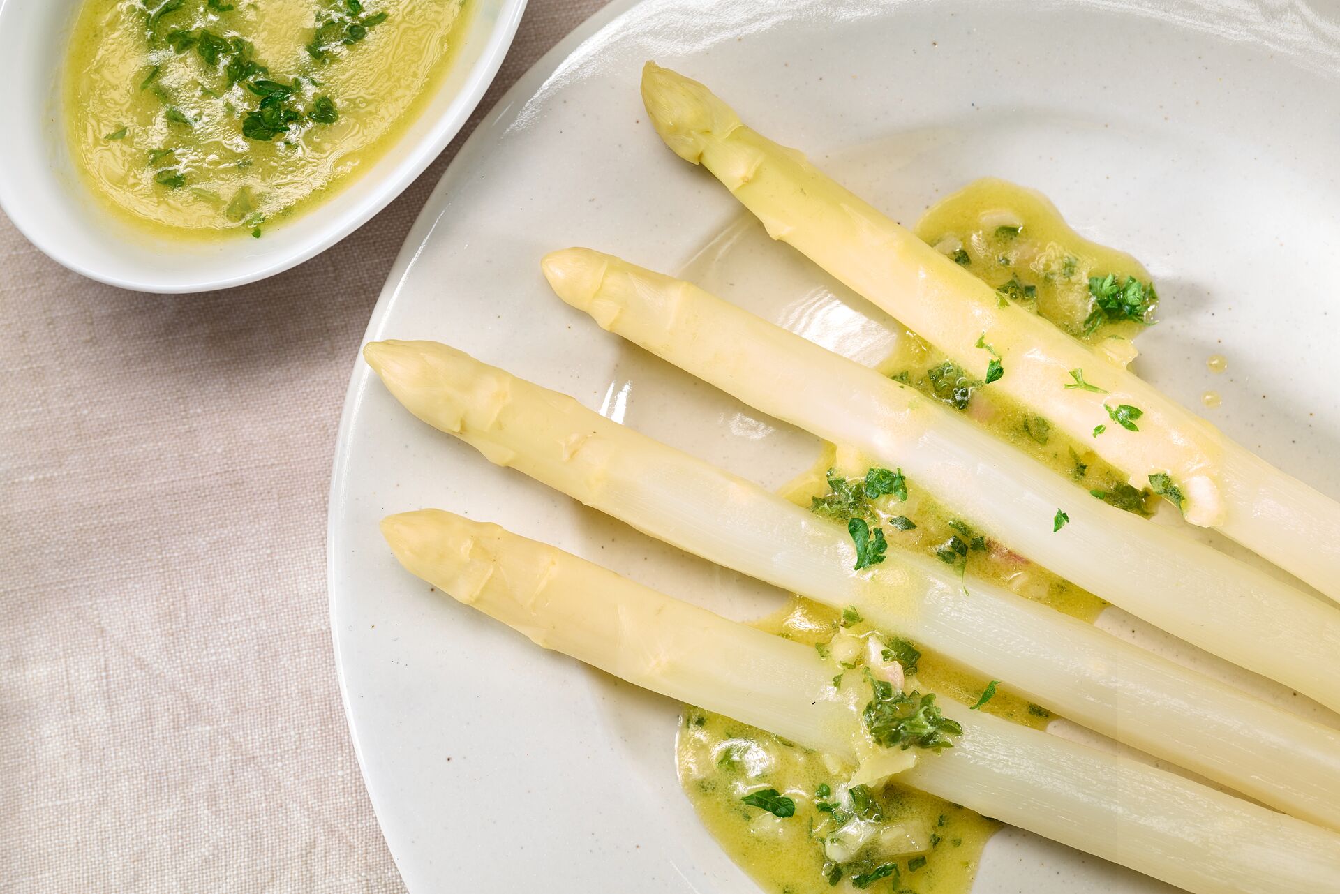 Spring recipes: green asparagus with Valais IGP cured ham, savoury tart, creamy risotto... or simply served warm with a homemade vinaigrette.