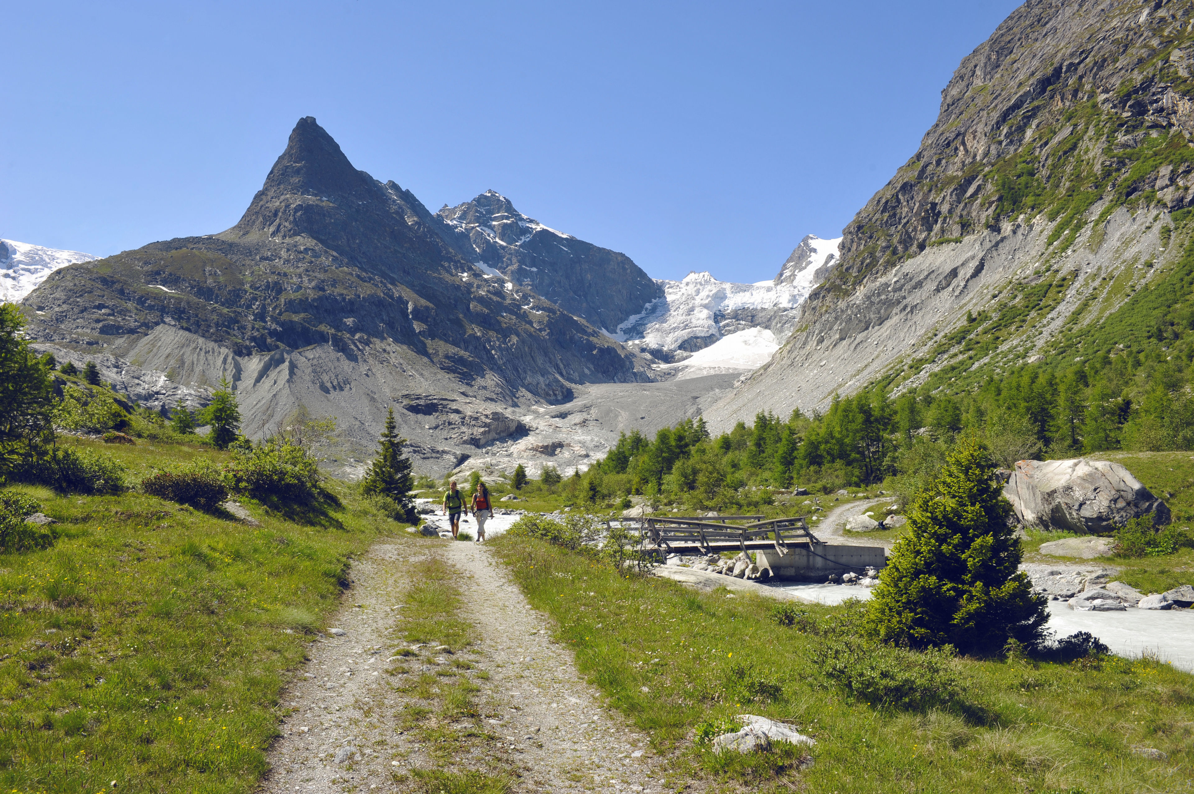 Le champ de glace relativement plat sur sa partie supérieure, au sud-est d'Evolène, est également nommé Plateau d'Hérens. Le glacier est dominé par la Dent Blanche (4357 m). À l'époque romaine, un sentier de muletiers fortement fréquenté reliait le Val d'Hérens à la Valpelline en Italie; des tronçons de cette route des hautes Alpes sont encore préservés.
