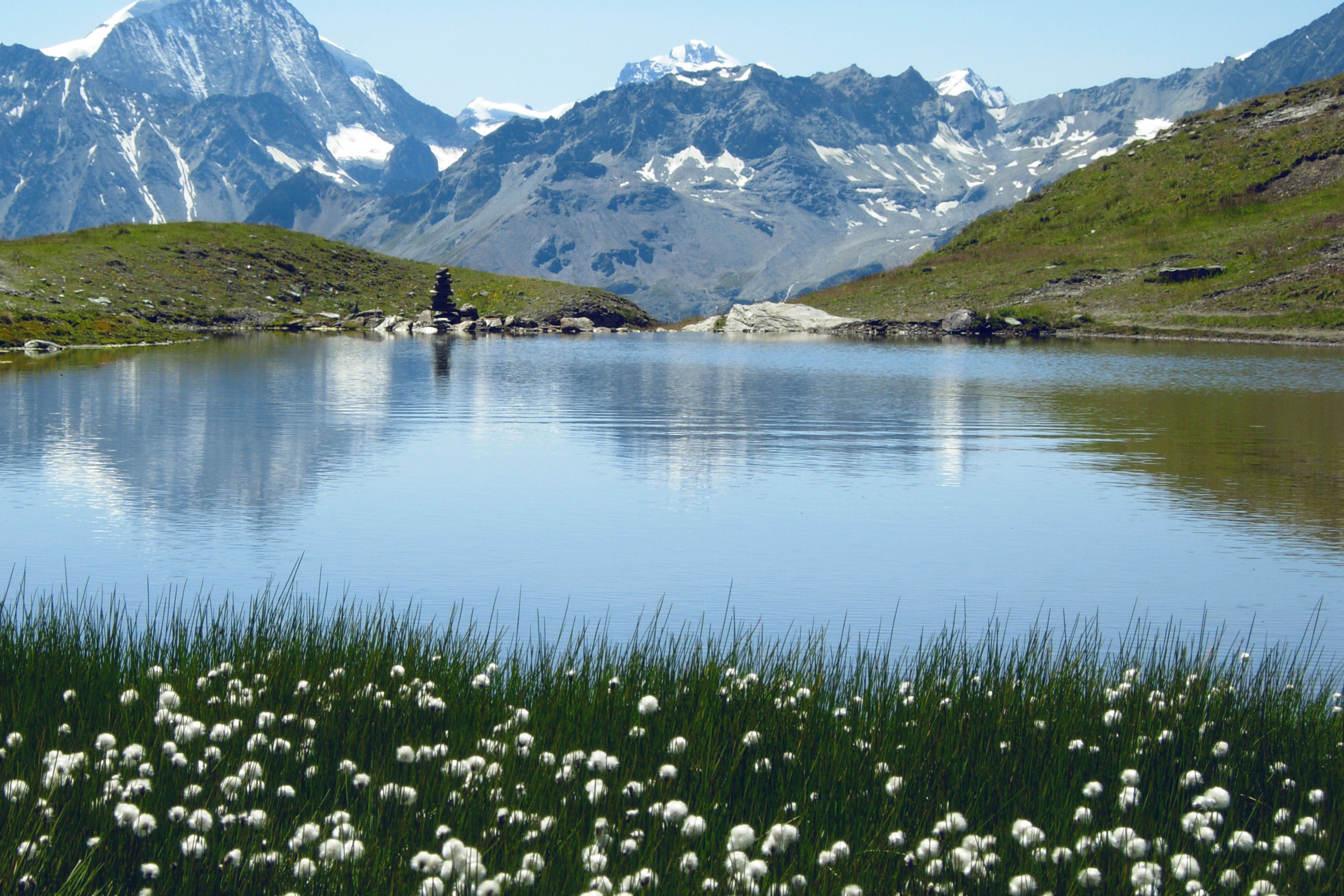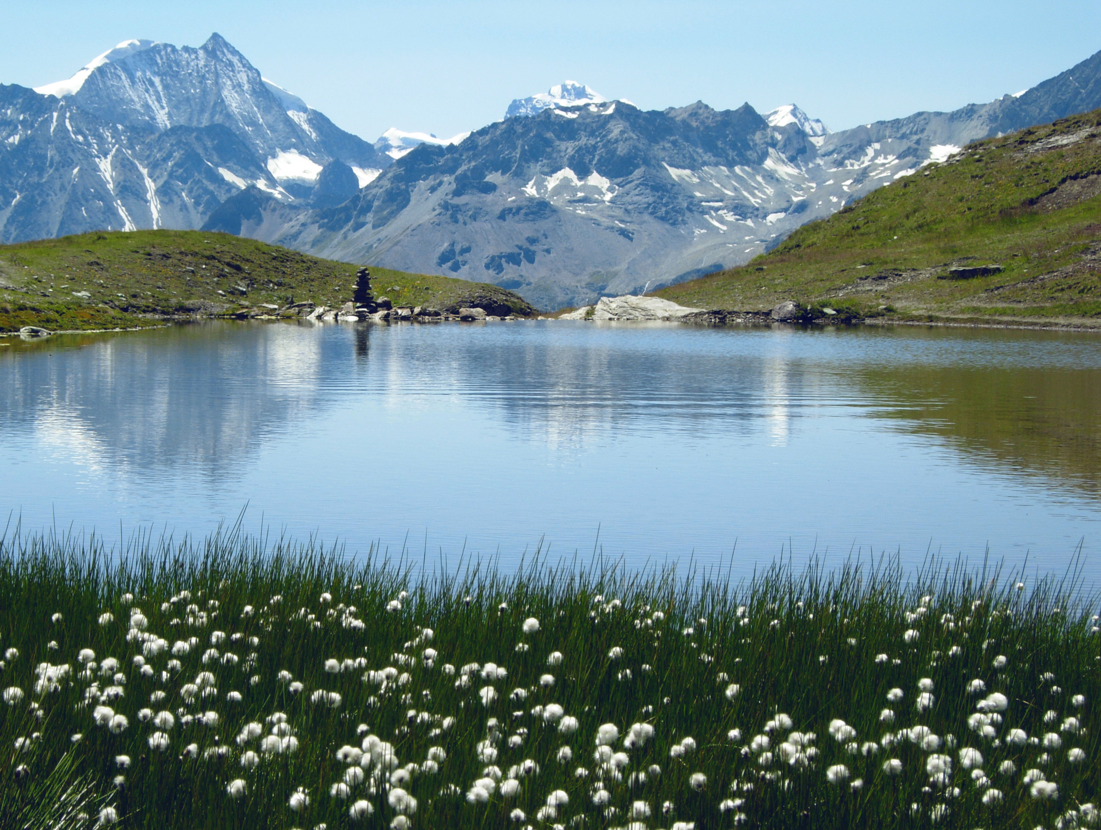 Le Lac du Tsaté (2687 m.) est accessible en 3 heures depuis La Sage en passant par le joli hameau de Motau. En patois valaisan, Tsaté signifie sommet rocheux dont la forme évoque un château. Depuis le lac, vous pourrez poursuivre votre randonnée jusqu’au Col de Tsaté d’où vous admirerez le Weisshorn, le Zinalrothorn, les Dents des Veisivi, le Pigne d’Arolla et le Mont Blanc de Cheilon.