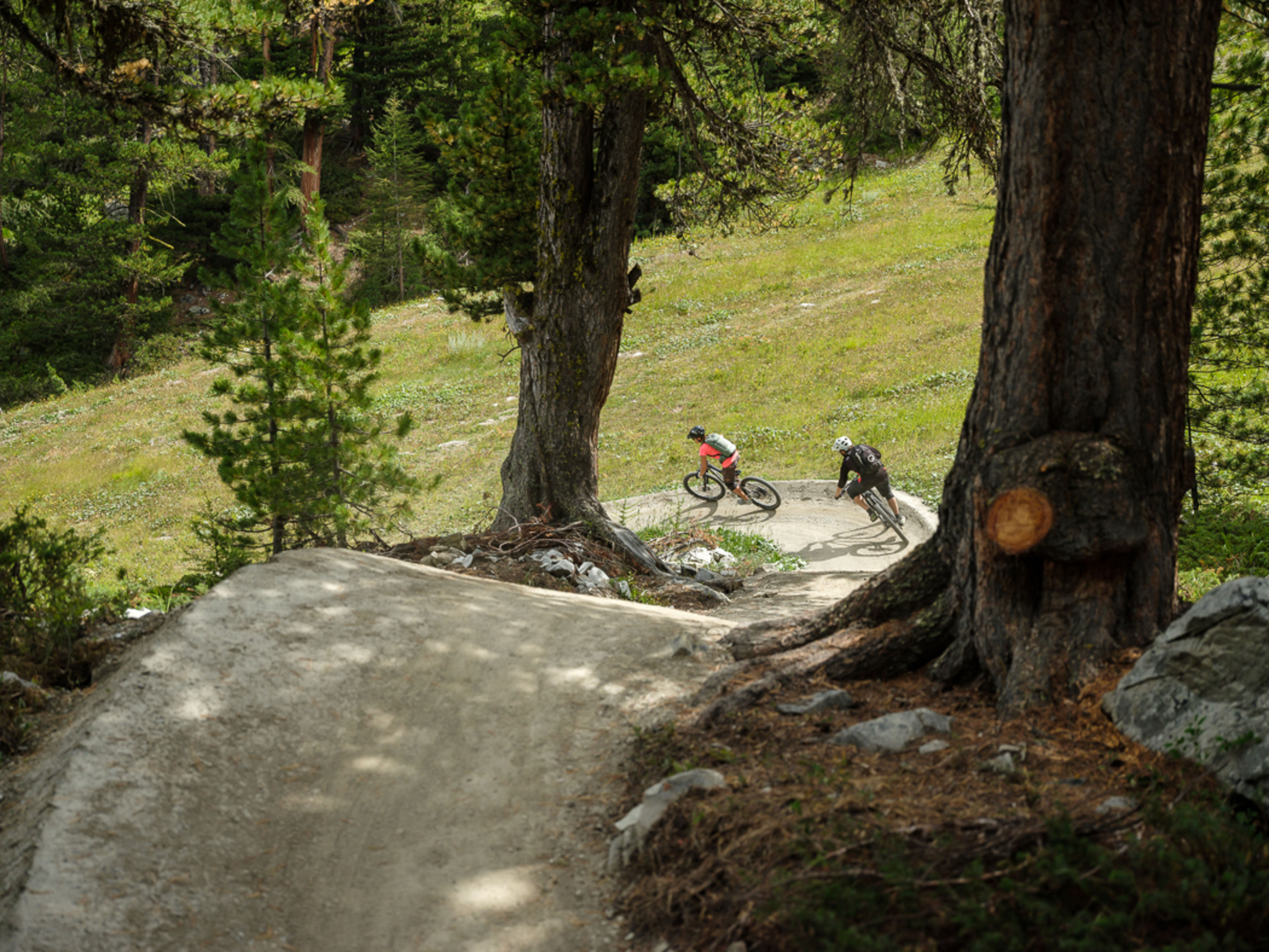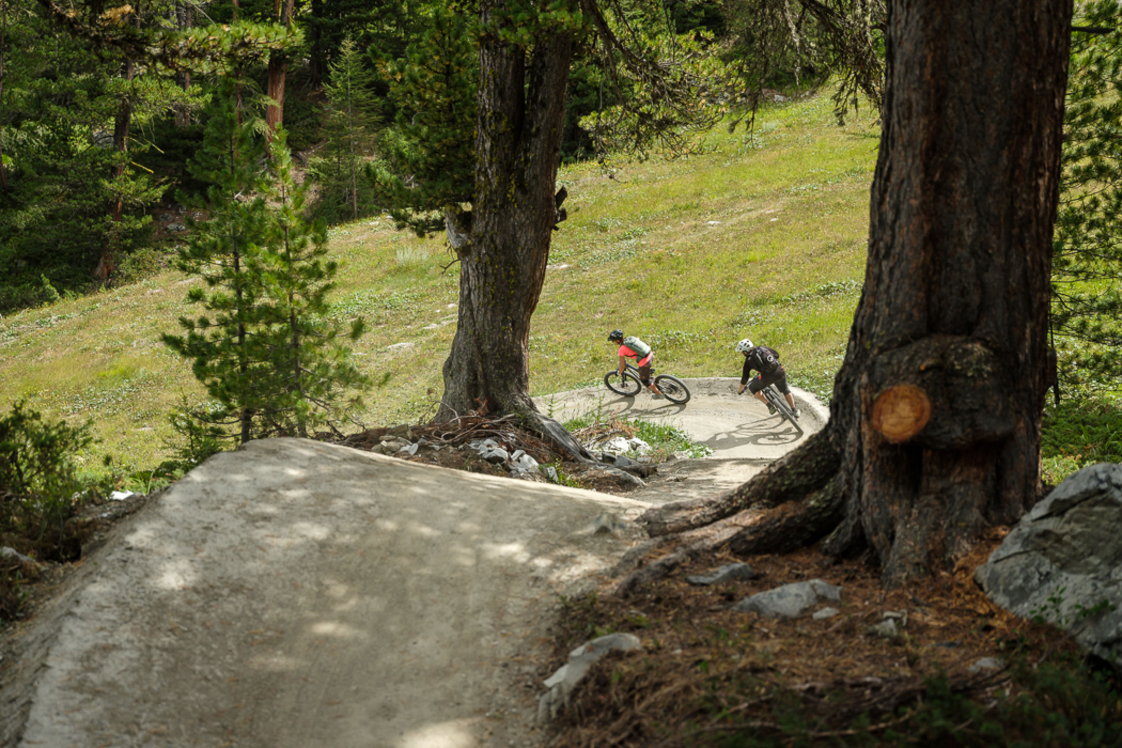 A Zermatt, la piste Sunnegga-Trail combine une vue superbe sur le Cervin et une magnifique piste de flow trail qui devrait plaire aux spécialistes de VTT mais aussi aux débutants. Pour vous rendre au départ du parcours, empruntez le funiculaire à Zermatt direction Sunnegga. Une fois en haut, profitez de la vue sur la montagne la plus célèbre du monde et élancez-vous dans cette incroyable descente de 500 mètres de dénivelé négatif.
