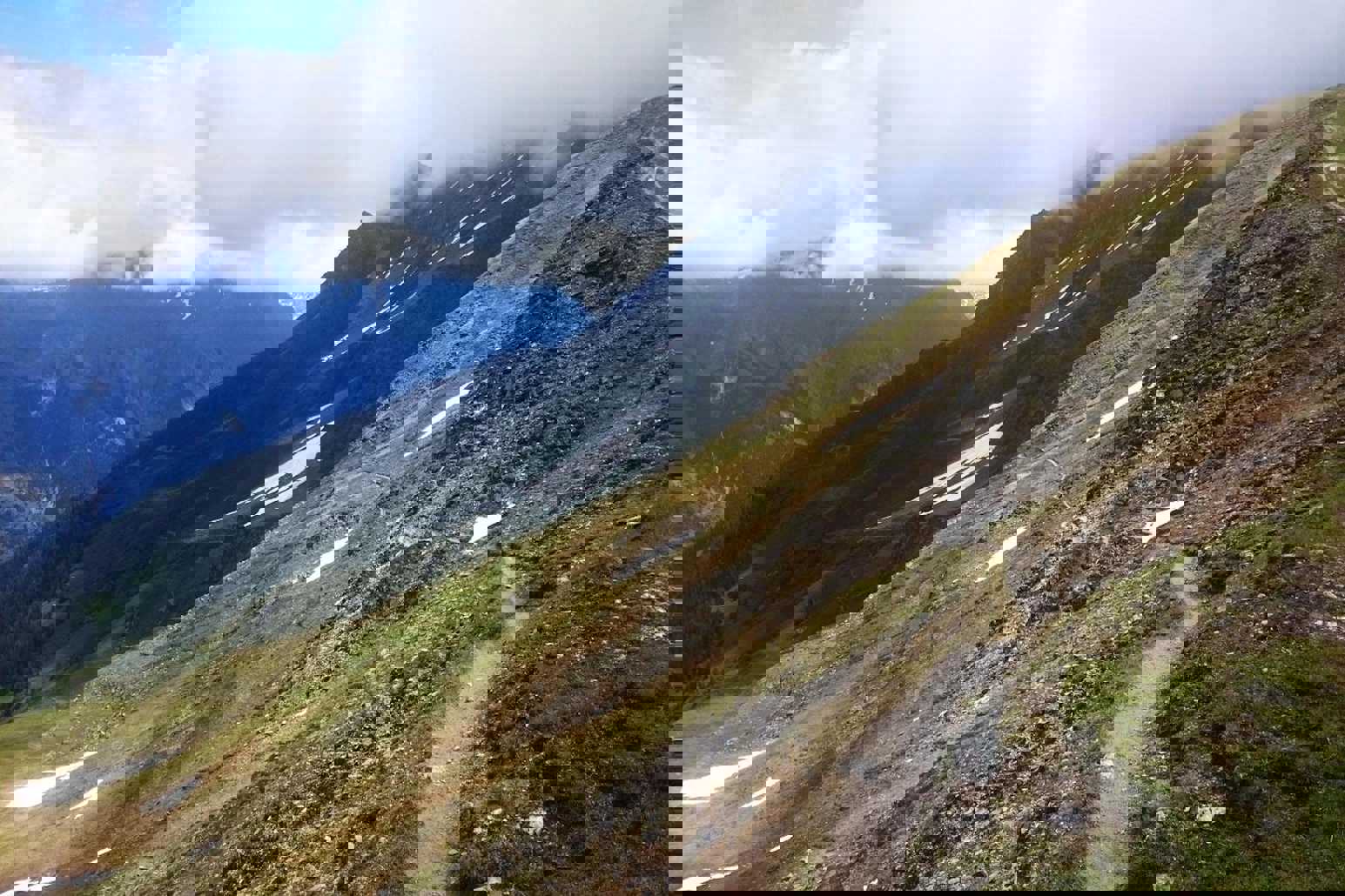 Une fois la route de Momin atteinte, le sentier coupe les lacets de la route. Attention, il s'agit de la partie la plus technique du tour.