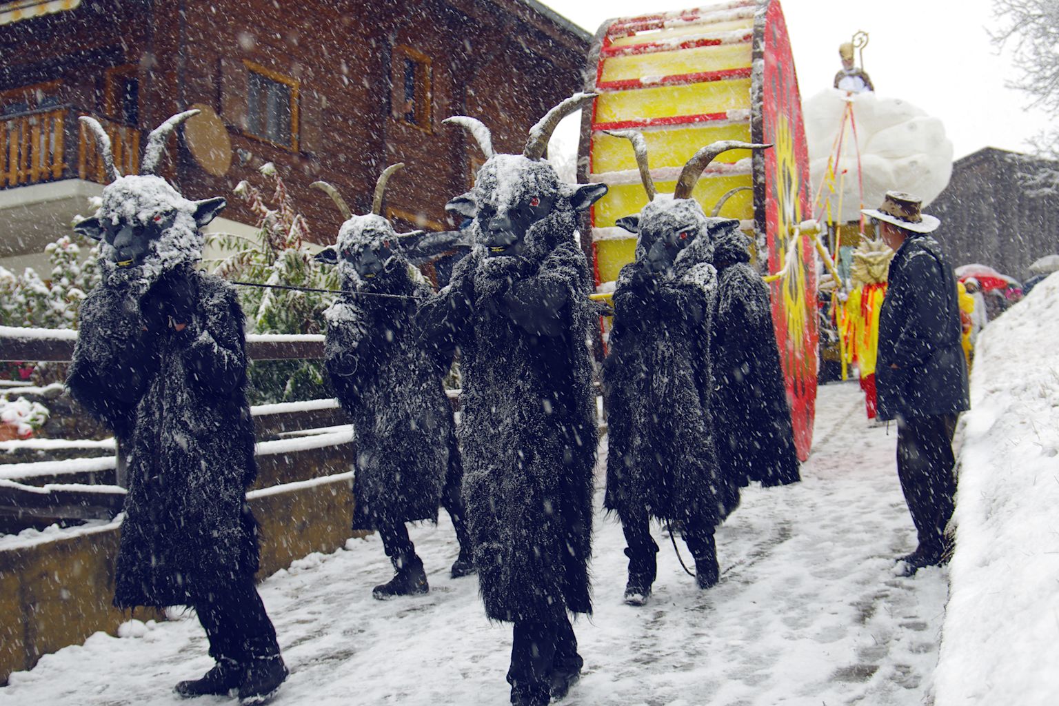 À Grengiols, petit village encaissé dans une vallée de montagne étroite, le soleil se cache en novembre pour ne réapparaître qu’à la mi-janvier. Les habitants du village prennent le surnom de « Schatteschlicker » qui leur a été attribué avec humour et célèbrent leur vie à l’ombre avec la « Sunnetreelleta ». Accompagnés de boucs effrayants et de chèvres, ils font descendre une grande roue solaire à travers le village avec fracas pour dire symboliquement au revoir au soleil.