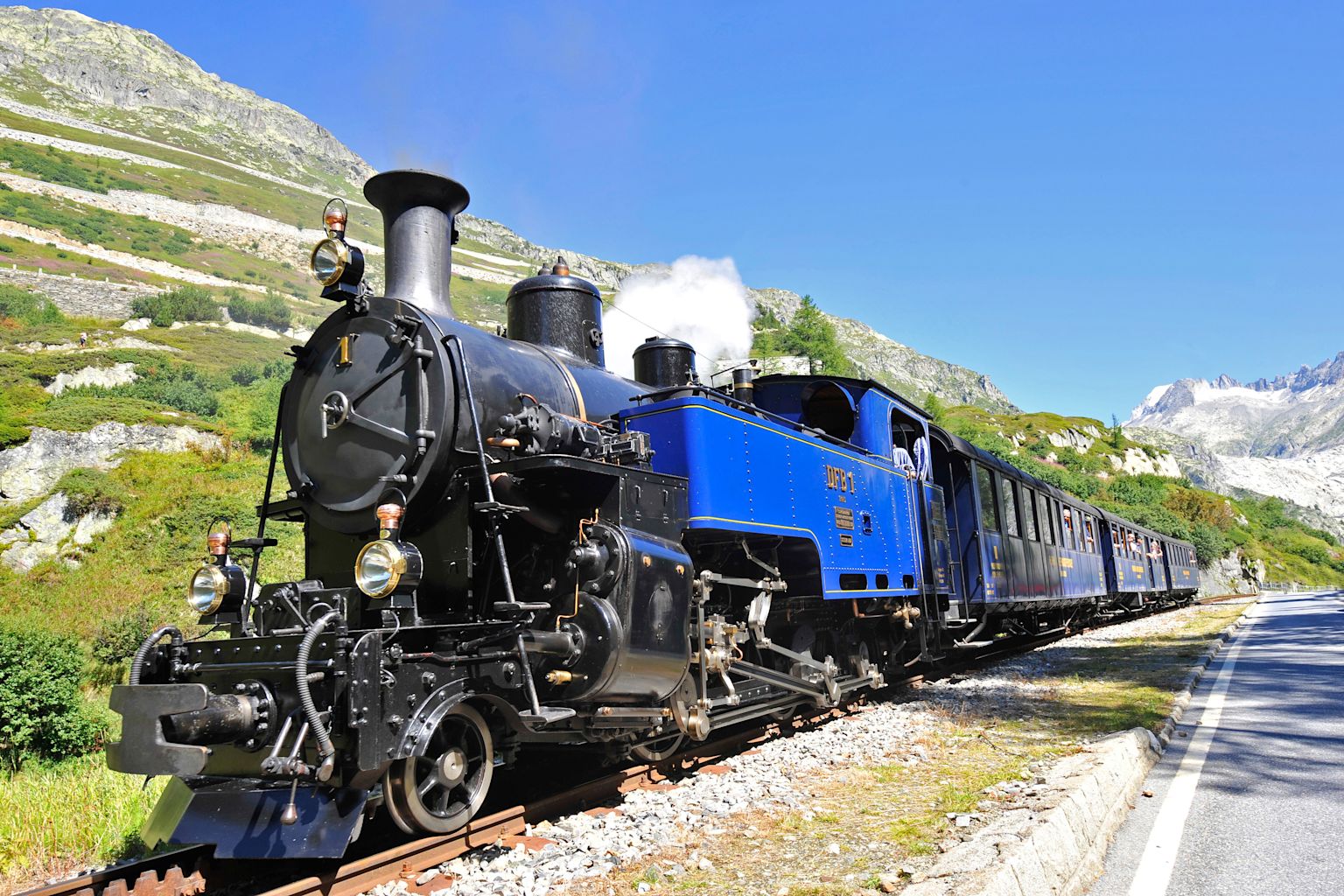 Construites entre 1902 et 1913, les locomotives à vapeur reprennent du service après une longue pause! Chaque jour, ces vénérables machines parcourent le tracé impressionnant qui part de Realp et traverse le tunnel de faîte de la Furka, long de 1874 mètres, jusqu’à Gletsch dans la haute vallée de Conches. Après la construction du tunnel de base de la Furka, le temps des locomotives à vapeur semblait révolu. Mais depuis 2010, le tracé historique du Glacier Express, entre Realp et Oberwald, est à nouveau praticable sur toute sa longueur. La perfection technique du tracé, le plaisir du parcours nostalgique en train à vapeur et les paysages de montagne grandioses se combinent idéalement pour offrir aux voyageurs une expérience inoubliable.