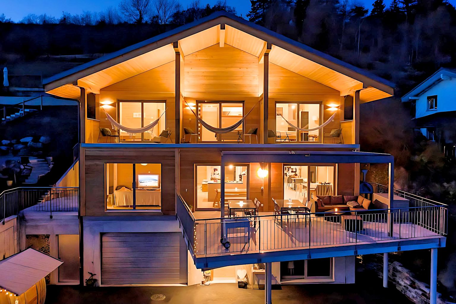 Le Chalet Diognysos, niché entre Sierre et Crans-Montana, propose une expérience unique : dormir dans un tonneau de 5370 litres soigneusement réaménagé, offrant une vue spectaculaire sur les Alpes valaisannes.