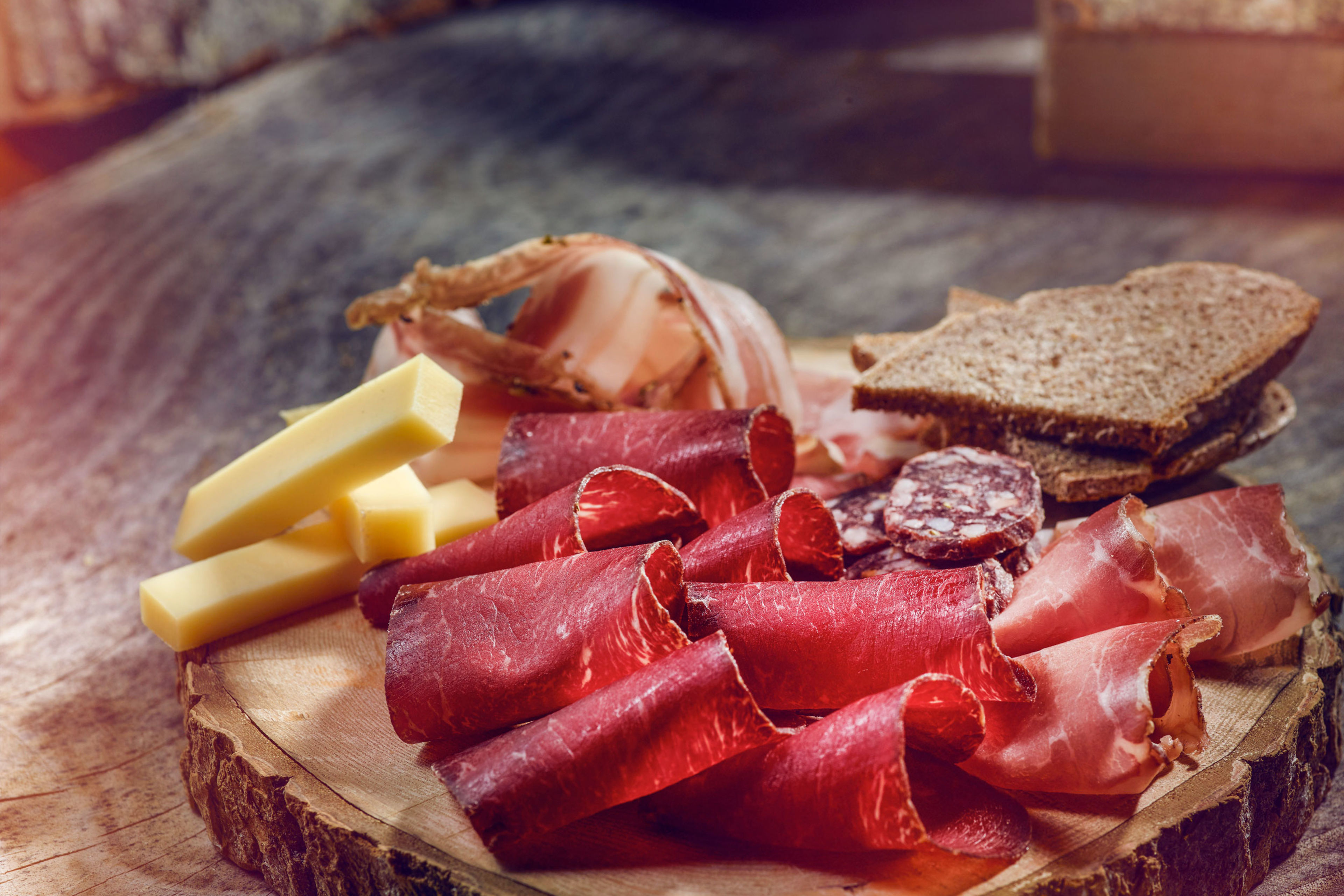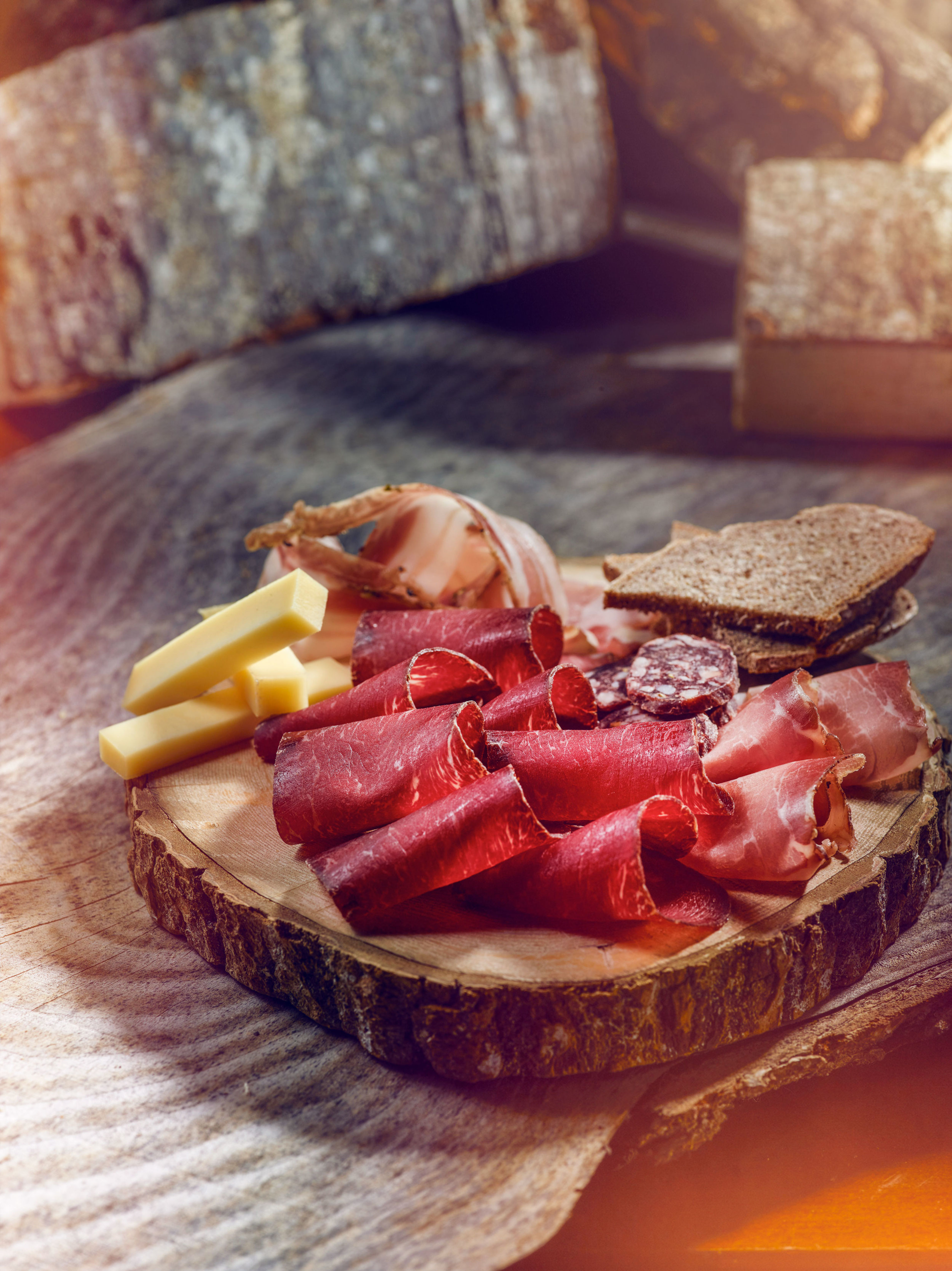 En Valais, c'est le plat emblématique et convivial par excellence. La reine des apéros. L'Assiette valaisanne. C'est elle qui marie au mieux les richesses du terroir valaisan. Vous retrouvez dans l’Assiette valaisanne, pour le plus grand plaisir de vos papilles, les produits authentiques suivants : Viande séchée du Valais IGP, Jambon cru du Valais IGP, Lard sec du Valais IGP, Raclette du Valais AOP, Pain de seigle valaisan AOP, et saucisse sèche du Valais.