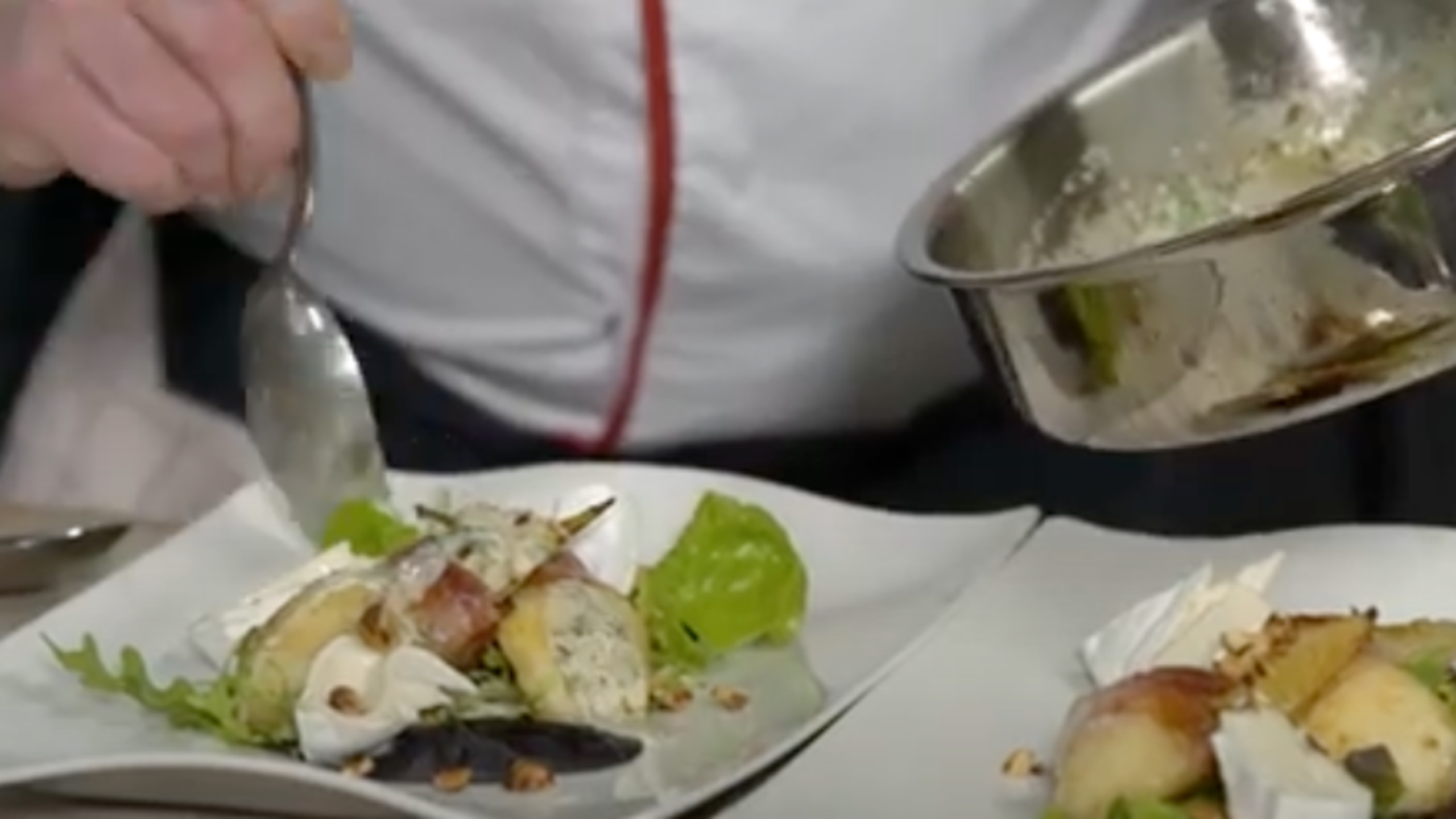 Poire Williams en manteau de Lard sec du Valais IGP rôtie à l’huile de noisette de Champlan et chèvre de l’Entremont